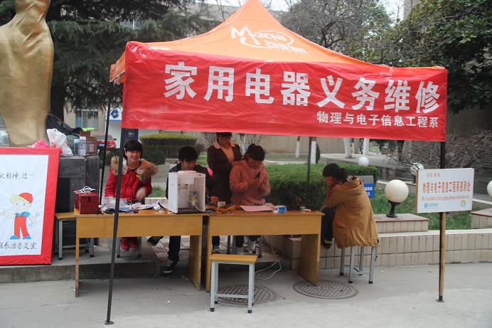 3月是万物复苏的季节,伴着学习“雷锋精神”的春风,beat365英国官网网站(原物理与电子信息工程系)团总支为了培养老员工对科技创新的兴趣,将理论与实践统一结合,发挥专业优势,特此举办最具系室特色的家电义务维修活动。