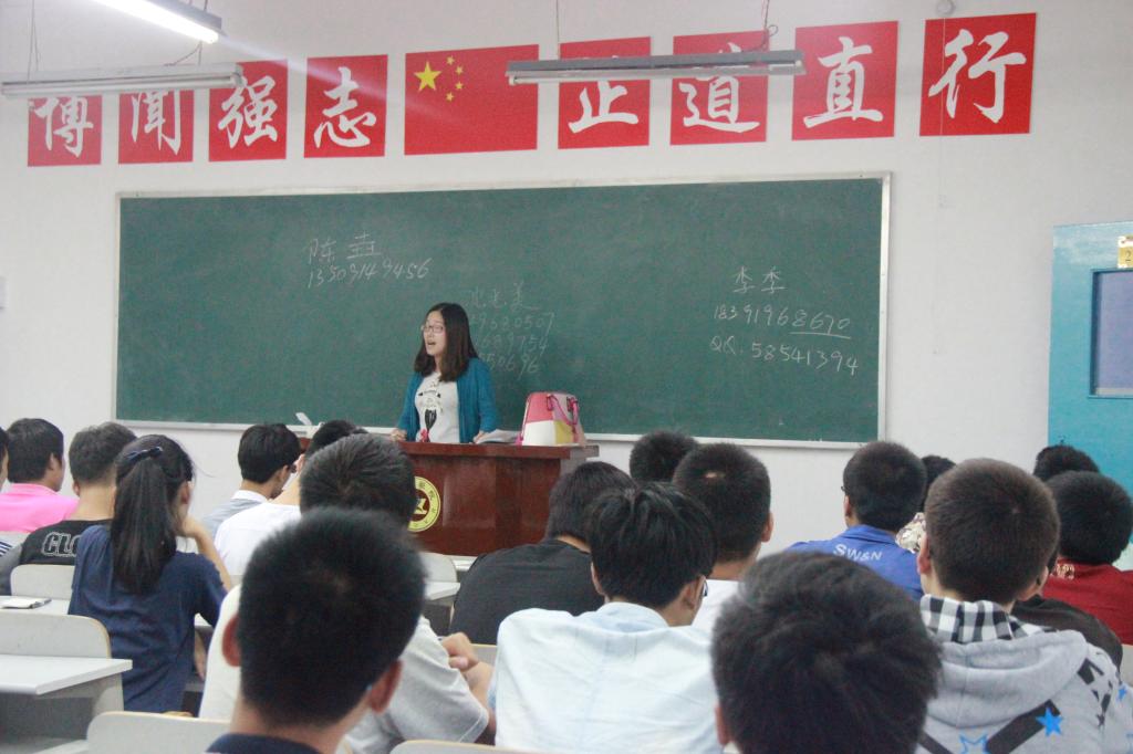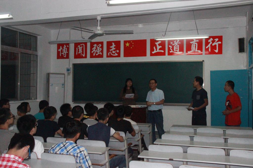 上图:电信公司党政办公室主任、电信1401班兼职班主任杨延锋主持召开本班新生见面会