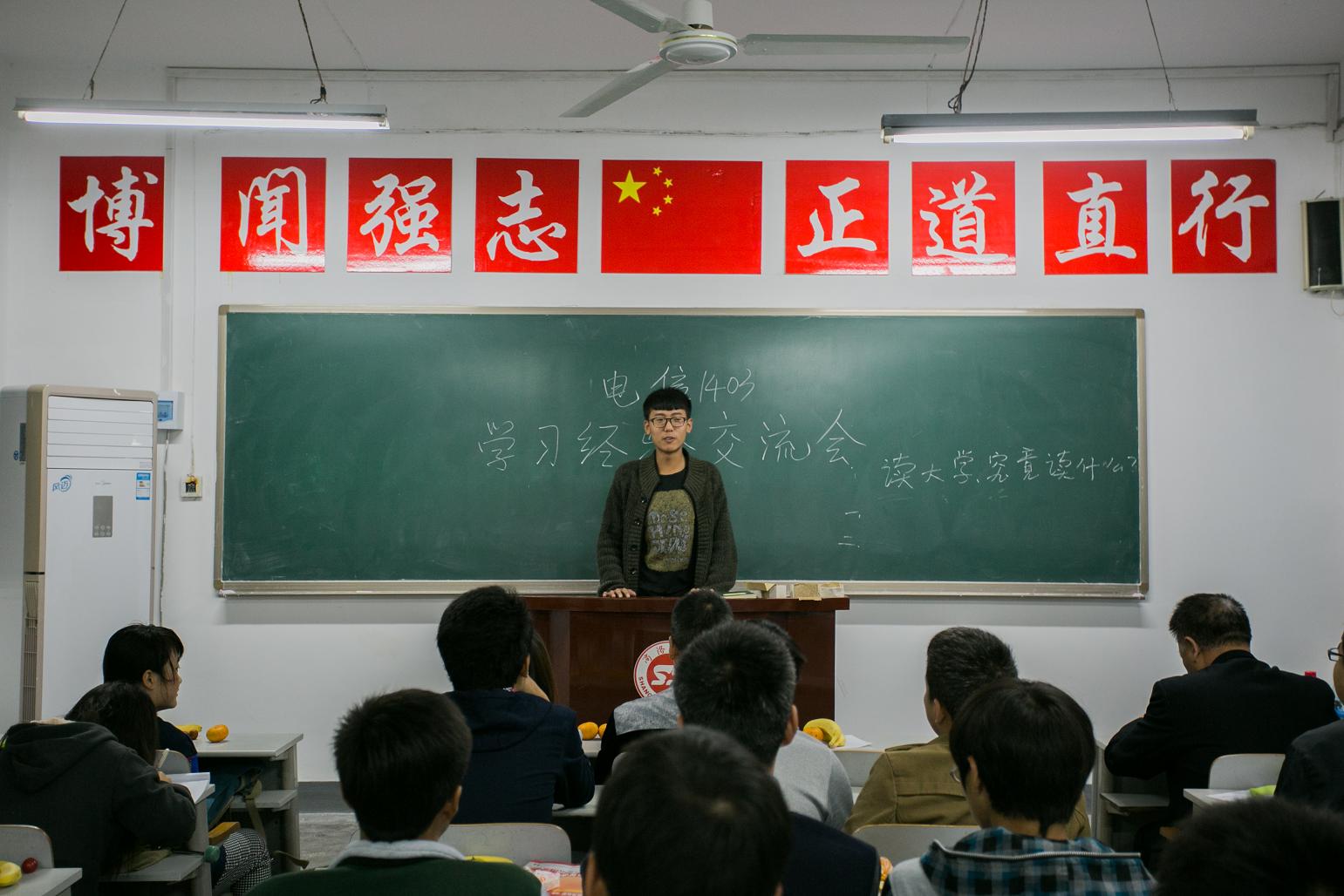 上图为:物理学1401班学习经验交流会现场