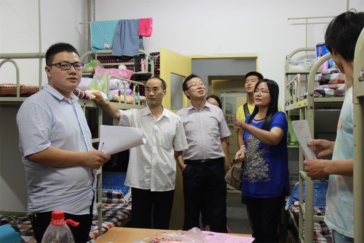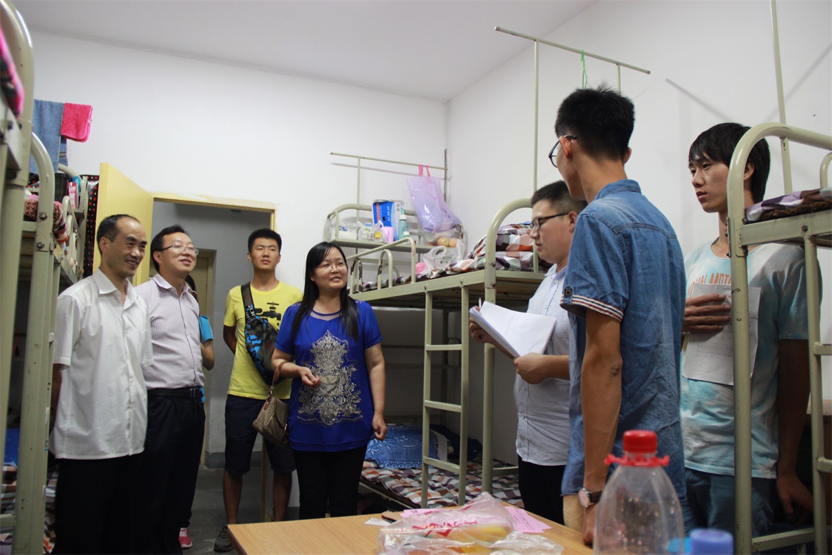 上图:beat365英国官网网站院系领导和辅导员深入员工宿舍看望新生