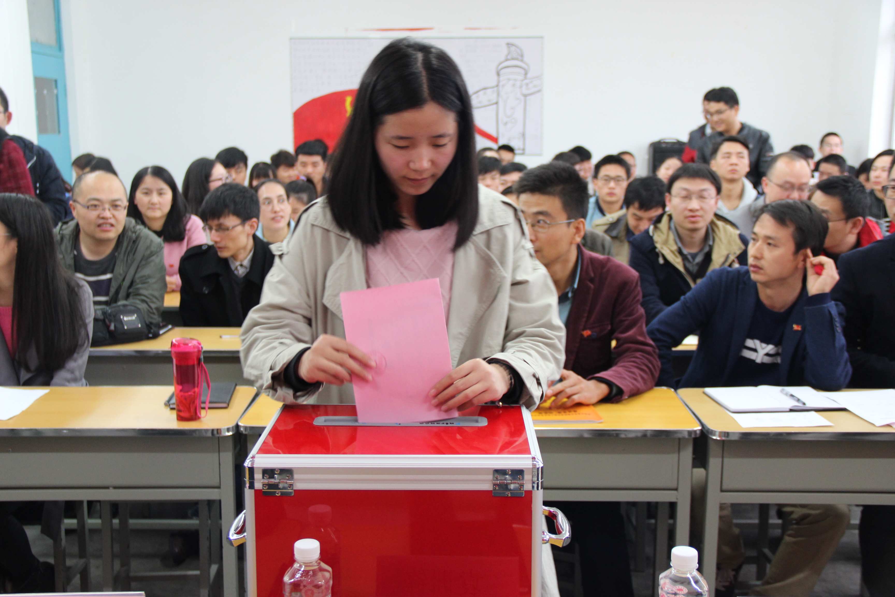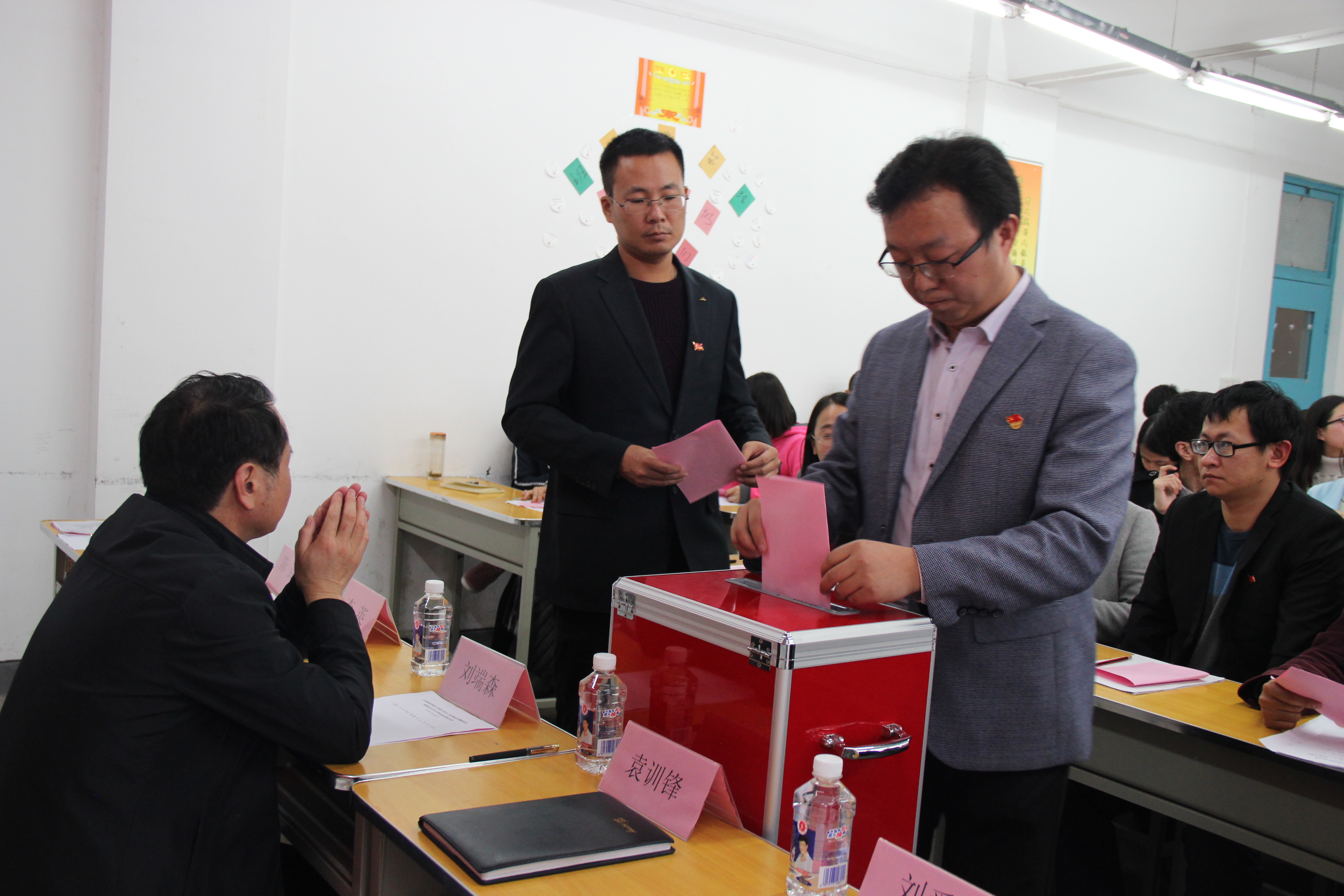 17:20许,第二次全体会议如期举行。会上,主持人陈垚同志宣布了票选结果,确定了由李英、陈垚、杨延锋、袁训锋、刘爱军五名同志组成的中共beat365英国官网网站总支部委员会第二届总支委员。