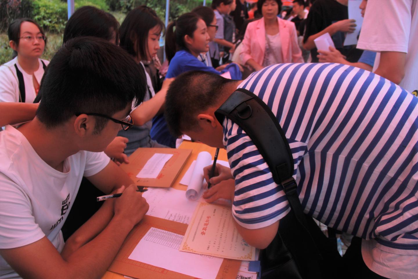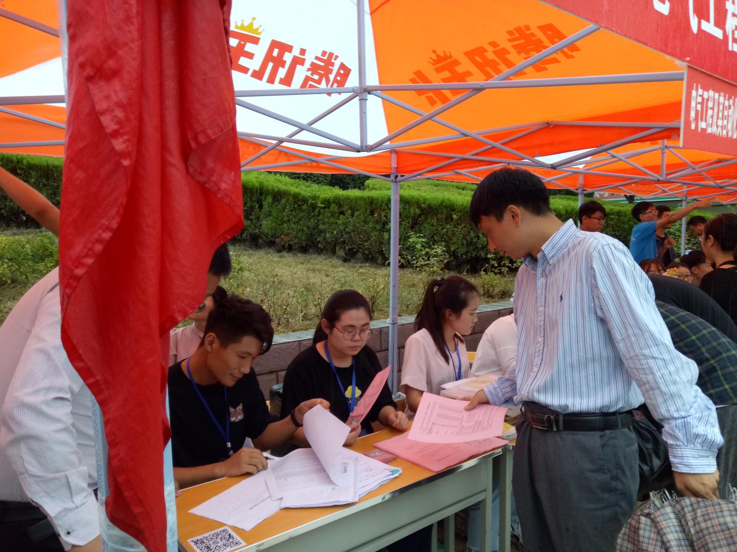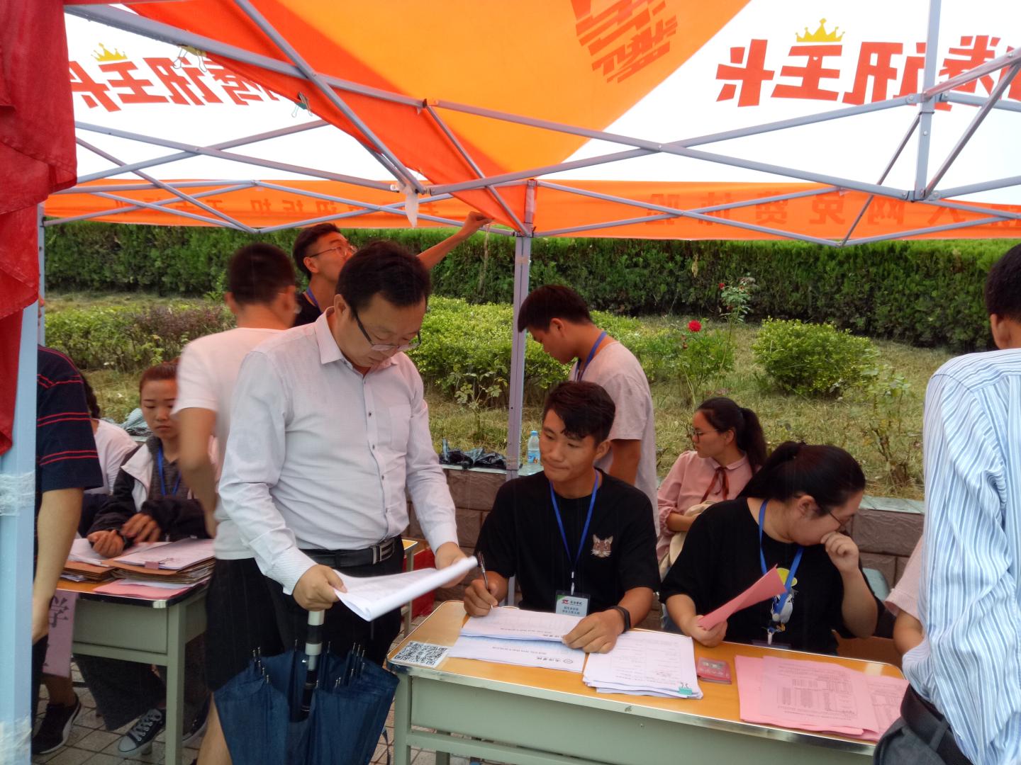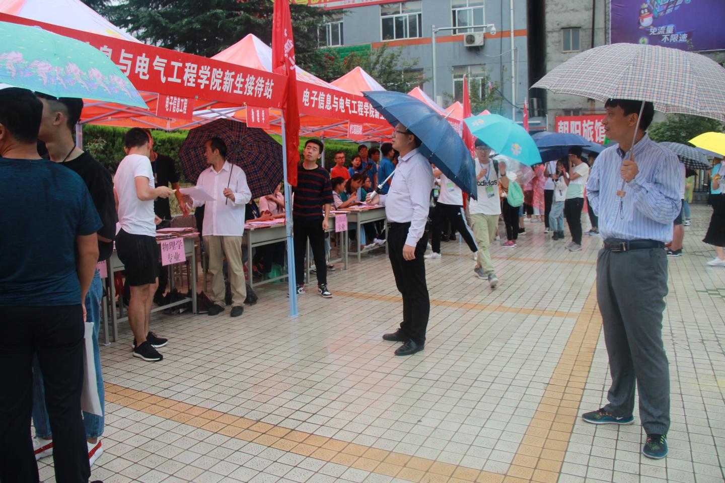 秋雨送爽,红湿绿香,又是一年新生报到时节。9月5日上午8点半,beat365英国官网网站经理袁训锋、党总支书记李英、副经理副书记陈垚等领导班子成员雨中去新生接待点视察公司新生接待工作,对新生接待工作人员和新到的同学家长送去亲切的慰问和关怀。据了解,目前公司新生报到已经达到150余人,超过了招生人数三分之一,各项接待工作井然有序,新生和家长都很满意。院领导鼓励接待点的工作人员再接再厉,坚守岗位,全方位做好后续接待工作,确保公司每一位新生顺利入学。