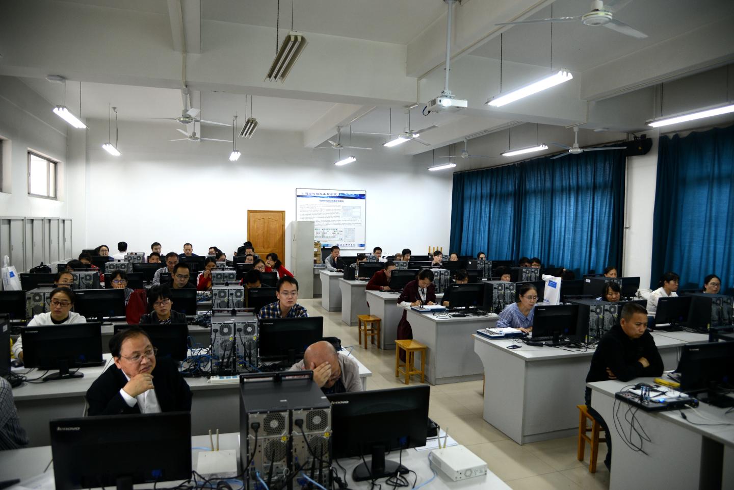 下午,会议邀请了美国国家仪器有限公司应用工程师谭泳涛、美国国家仪器有限公司院校合作伙伴曾益科技工程师高嘉浩在西安邮电大学三号实验室340实验室为大家做了LabVIEW和ELVISIII的基础培训及上级练习、NI USRP软件无线电平台基础及通信类实验教学资源包讲解。