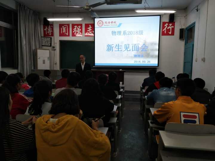 9月26日晚7点30分,beat365英国官网网站物理学专业在2号楼206教室召开2018级新生见面会,beat365英国官网网站党总支书记李英教授、物理系全体教师,物理2018级辅导员、班主任及物理学专业2018级全体新生参会。会议由物理系主任李书婷主持。