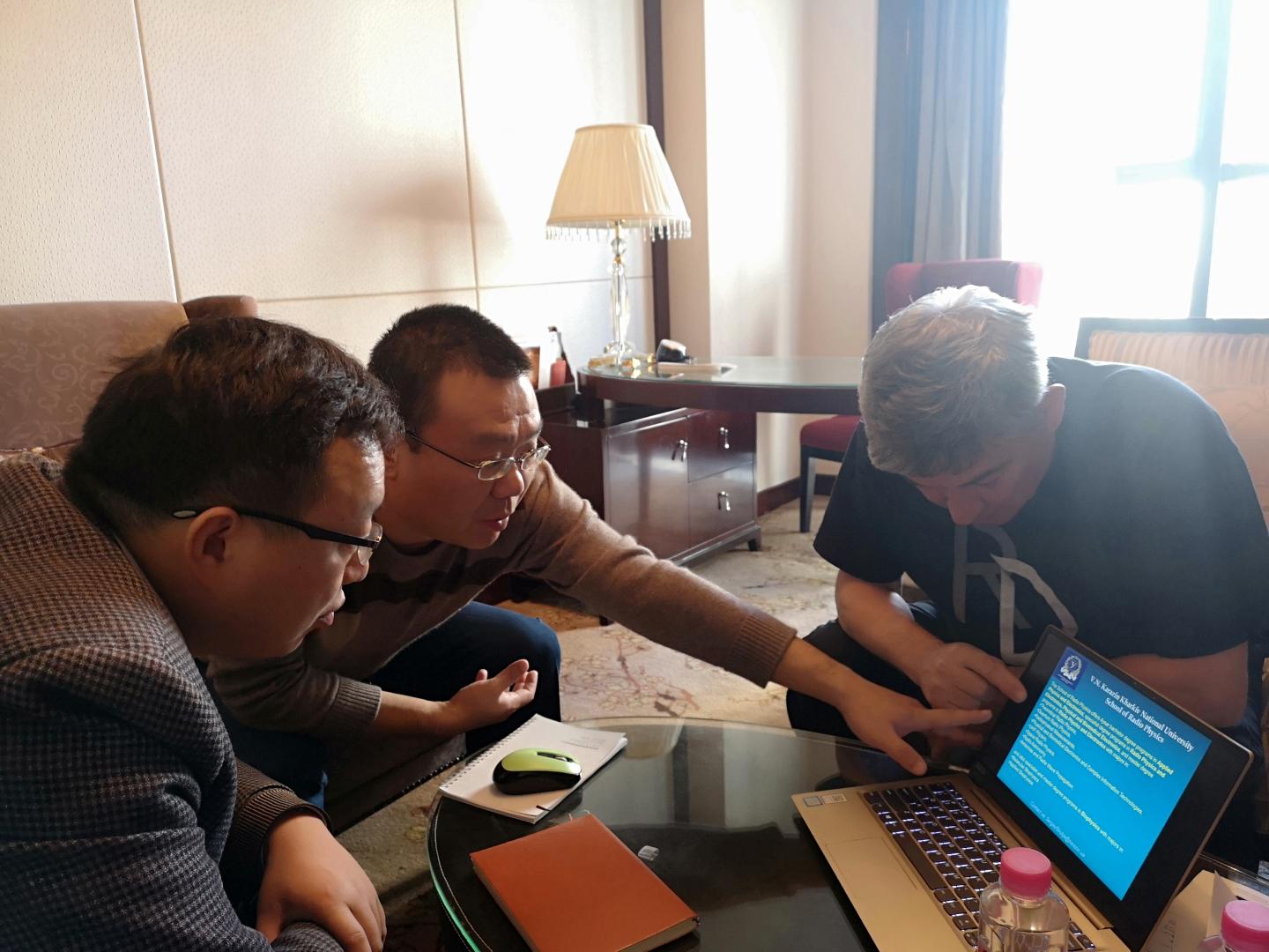首先, Sergiy M. Shulga教授介绍乌克兰哈尔科夫国立大学及无线电物理系概况、团队队伍、研究方向、科研成果以及近年来与中国院校的合作情况。袁训锋也介绍beat365英国官网网站及beat365英国官网网站发展历程及学科专业情况,阐述在联合申报项目、合作共建实验室、选派员工和教师攻读学位等方面合作的具体思路。随后,与会人员对合作的具体内容进行亲切友好的协商,初步拟定以乌克兰哈尔科夫国立大学无线电物理学科优势为基础,结合beat365英国官网网站秦岭矿产资源综合开发利用特色方向,广泛开展电磁探测矿石分选和电磁探测尾矿库监控研究。会谈后,Sergiy M. Shulga教授愉快接受2019年春来beat365英国官网网站访问并作交流报告的邀请。