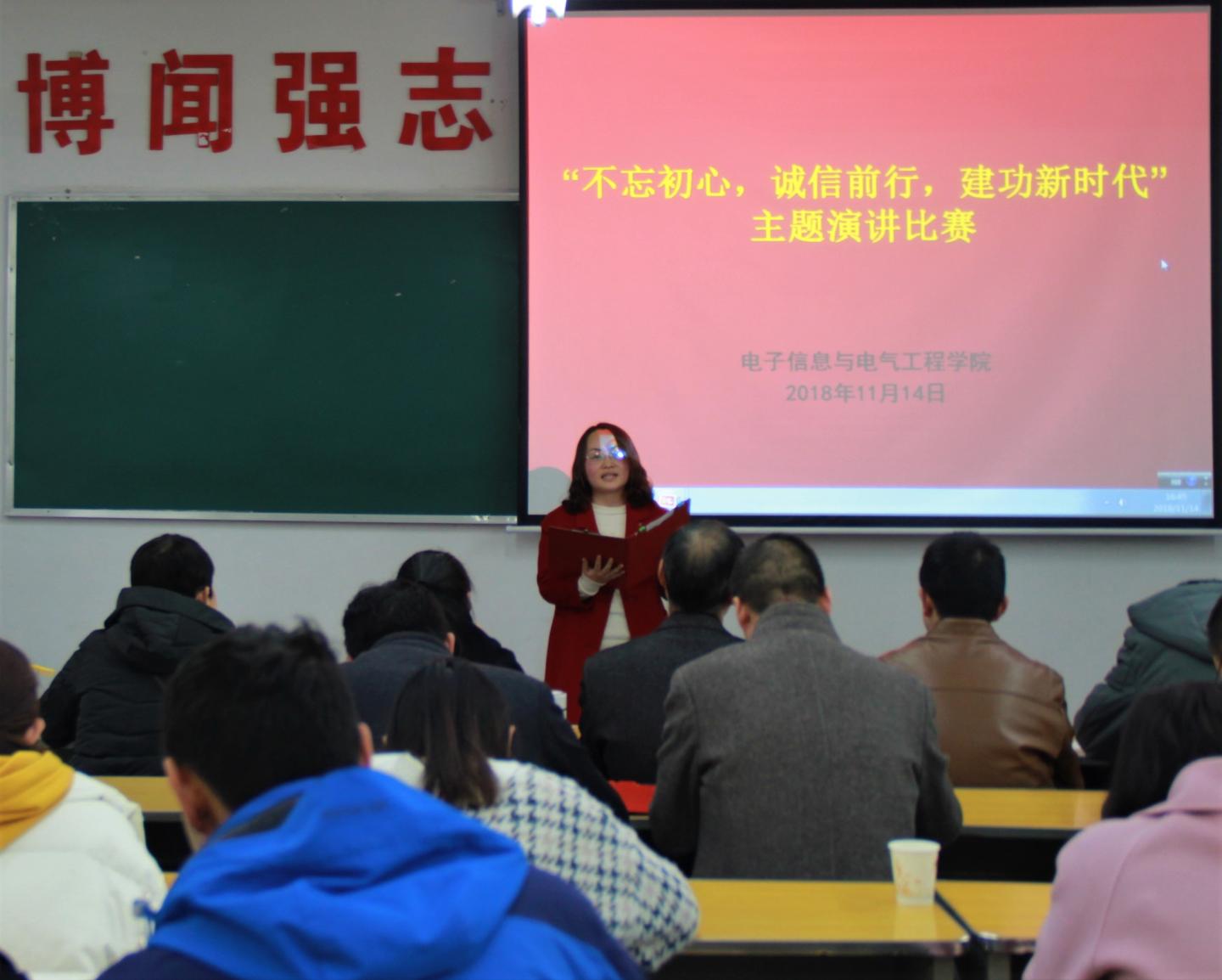 接着,按照抽签顺序,参赛选手陆续登场,他们潇洒的仪态,动人的嗓音,深情而精彩的演讲,赢得了观众的阵阵热烈的掌声。演讲者从生活小事谈起,引经据典,以身作则,阐述了对诚信的理解,以及如何守信。守信,守住的不仅仅是人与人之间的信任,更是心与心之间的交流。在座的评委们客观公正的为每位参赛者打分,最终陈倩获得一等奖,刘俊、沈光美分别获得二等奖任艳、楚冰清、张鑫获得三等奖,唐龙龙获得优秀奖。