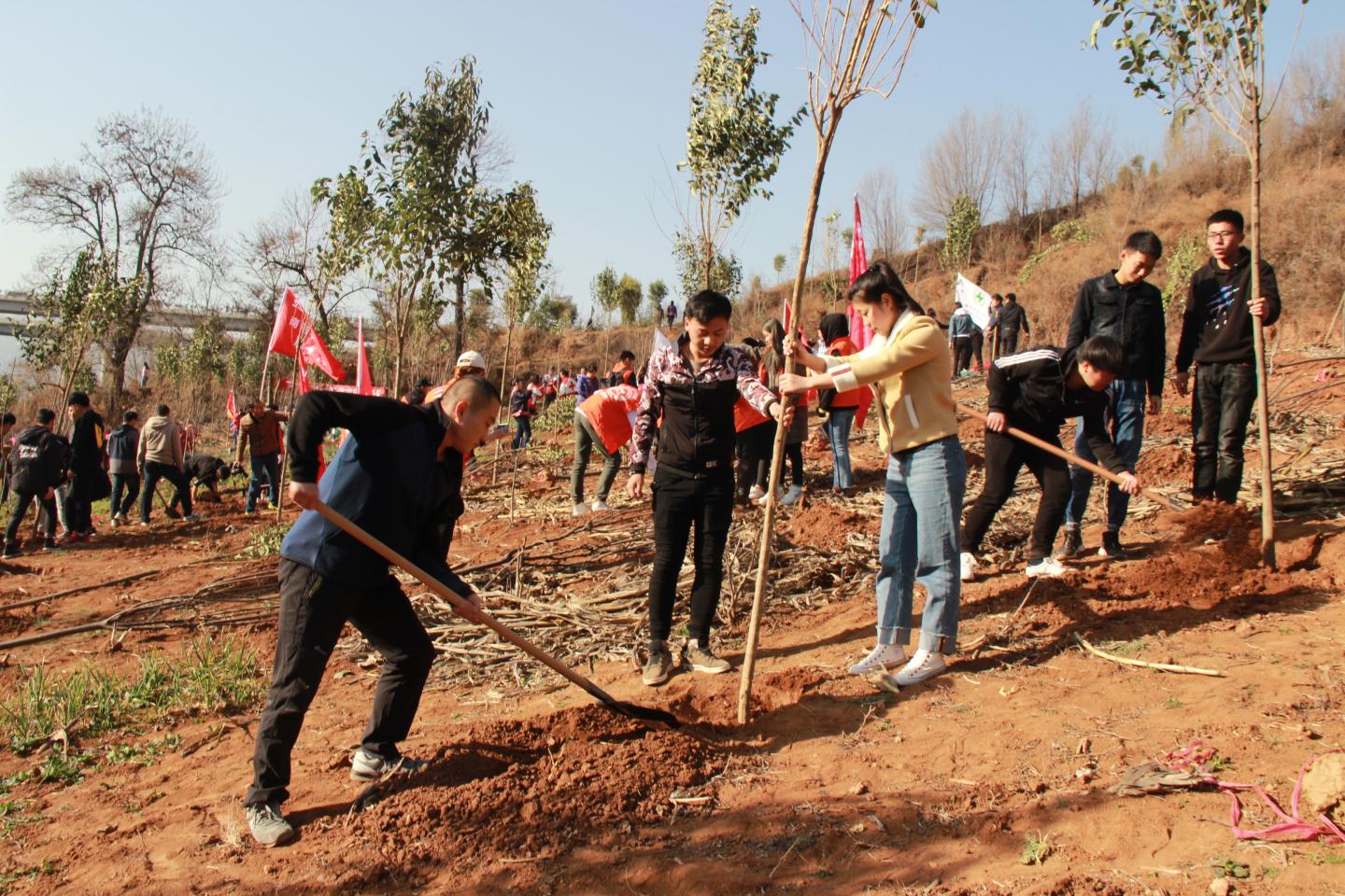 阳春三月,微风拂柳,又是一年一度植树节,beat365英国官网网站部分员工积极响应团市委号召,于3月12日开展了“学雷锋月——美丽商洛”植树活动。