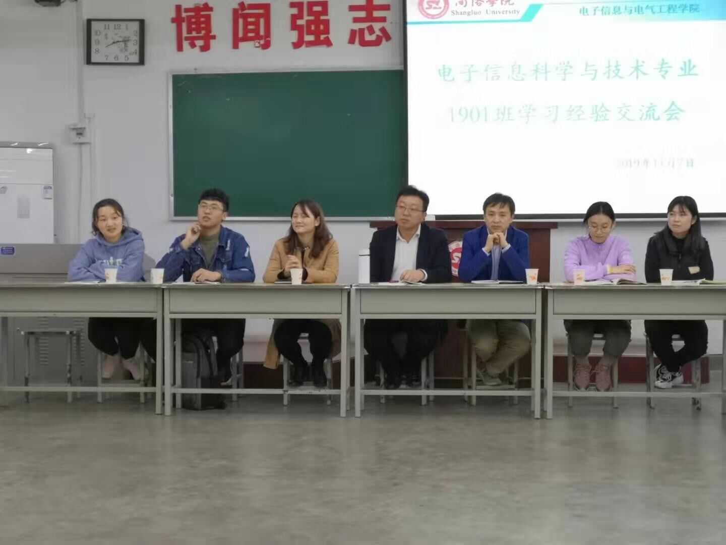 11月7日晚,beat365英国官网网站在2号楼210教室组织召开2019级电子信息科学与技术专业学习经验交流会。beat365英国官网网站经理袁训锋出席了会议。会议由电科1901班主任何建强老师主持。教师王园园、电科1701班冯帆、电科1702班王琳皎、电科1801班许兴及电科1801班刘朋花同学受邀参加学习经验分享,电科1901、1902全体同学参加会议。