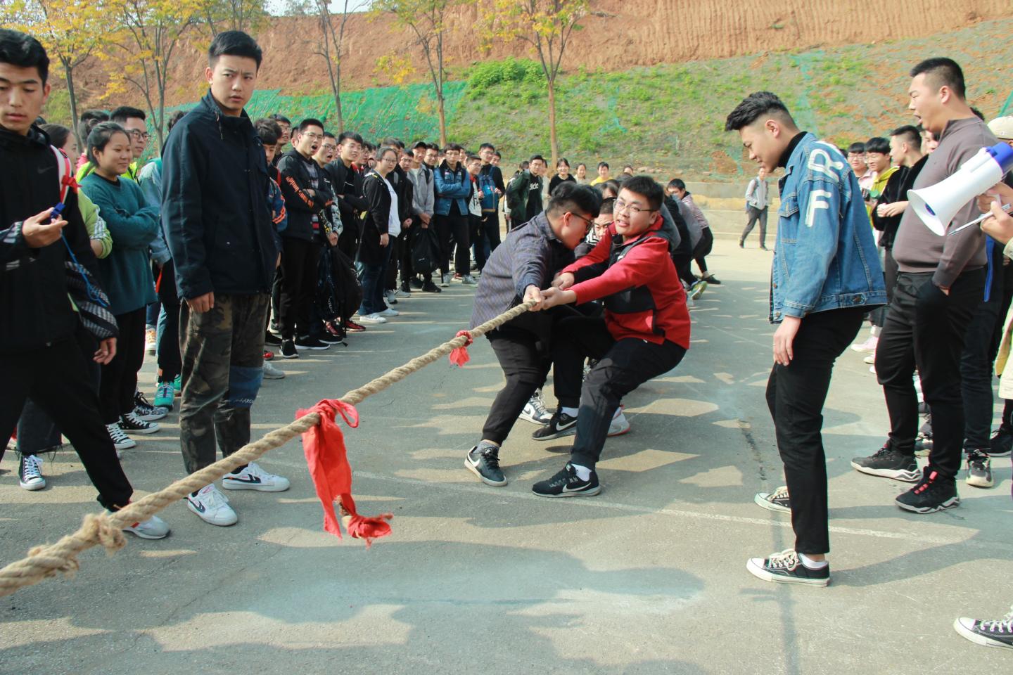 比赛场上,参赛的同学们紧握麻绳,斗志昂扬。随着裁判哨声响起,伴着拉拉队员们“一二,一二”的加油声,参赛同学们齐心协力,铆足了劲往后拉。场下,各班组成的啦啦队的呐喊声、加油声、哨子声此起彼伏,将本次比赛推向了另一个高潮。最终电气1903、1904代表队获得冠军,电信1811、1812代表队获得亚军,电信1801、1802代表队获得第三名。