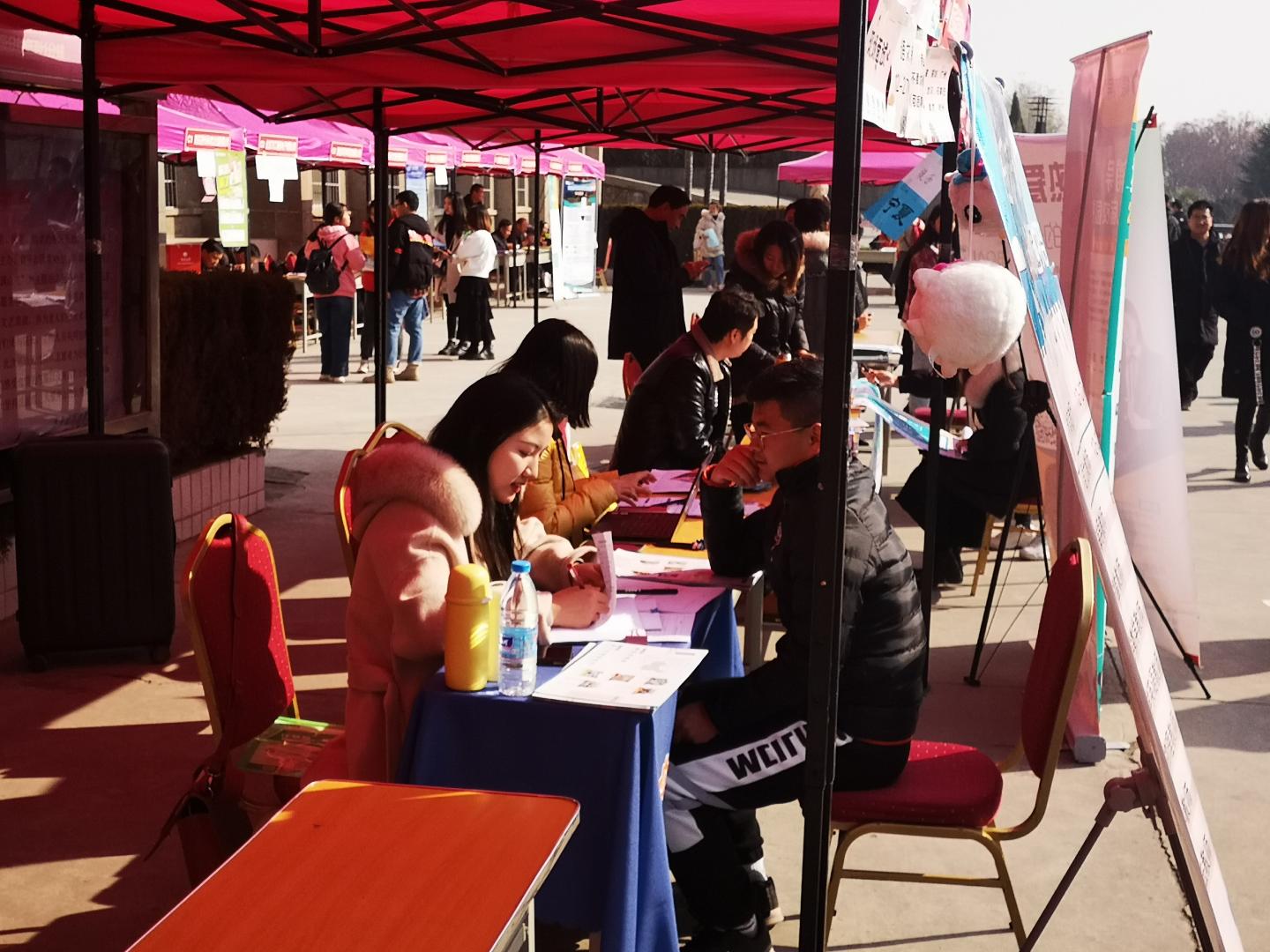 为切实做好毕业生就业工作,缓解毕业生就业压力,大力构建毕业生与用人单位的交流平台,积极为用人单位输送应用型人才,beat365英国官网网站于12月7日上午在五号教学楼前广场组织举办了2019年冬季综合类院校招聘会,beat365英国官网网站积极参与此次活动。公司党总支书记李英及辅导员沈光美、唐龙龙带领公司2020届毕业生参加此次招聘会。