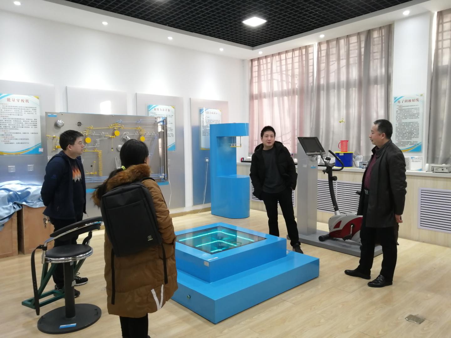 刘爱军、李书婷和何建强赴物理与光电技术公司进行了座谈交流。物电公司经理钱郁、党政领导和各专业负责人参加了座谈会。座谈会上,钱郁经理介绍了物电公司的历史沿革、专业建设、教师队伍、人才培养、学科平台和科研成果等基本情况。双方就人才培养方案、课程开设情况、师范专业认证情况、工科类专业实习实践等问题开展了深入交流,对beat365英国官网网站的物理学专业人才培养方案和电子信息科学与技术专业的课程设置、实习实训工作提出了意见和建议。座谈结束后,公司教师参观了该校物理与光电技术公司物理演示实验室、超快光学实验中心和近代物理等相关实验室,参观了电子电气工程公司电力系统继电保护实验室、PLC实验室、风力发电实验室、轨道交通等实验室。