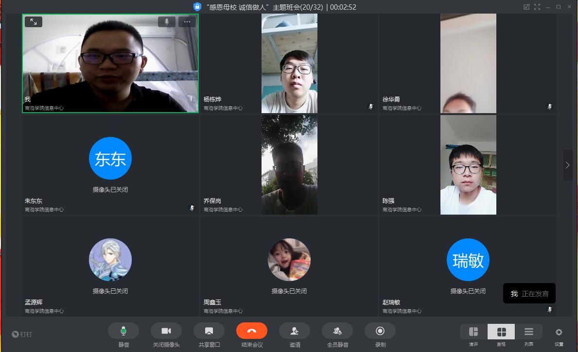 活动伊始,班主任老师和同学们一起回顾了大学四年生活的点滴,指出今年因为疫情影响,给我们的毕业教育形式带来了一些改变,但是母校对同学的祝福不变,同学们要心怀感恩,诚信前行。与会同学也表达了自己对公司的感恩感谢及不舍之情,坚定了诚信做人的信心。