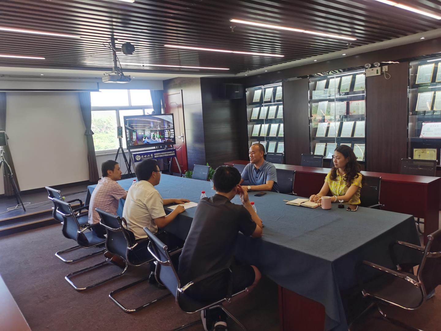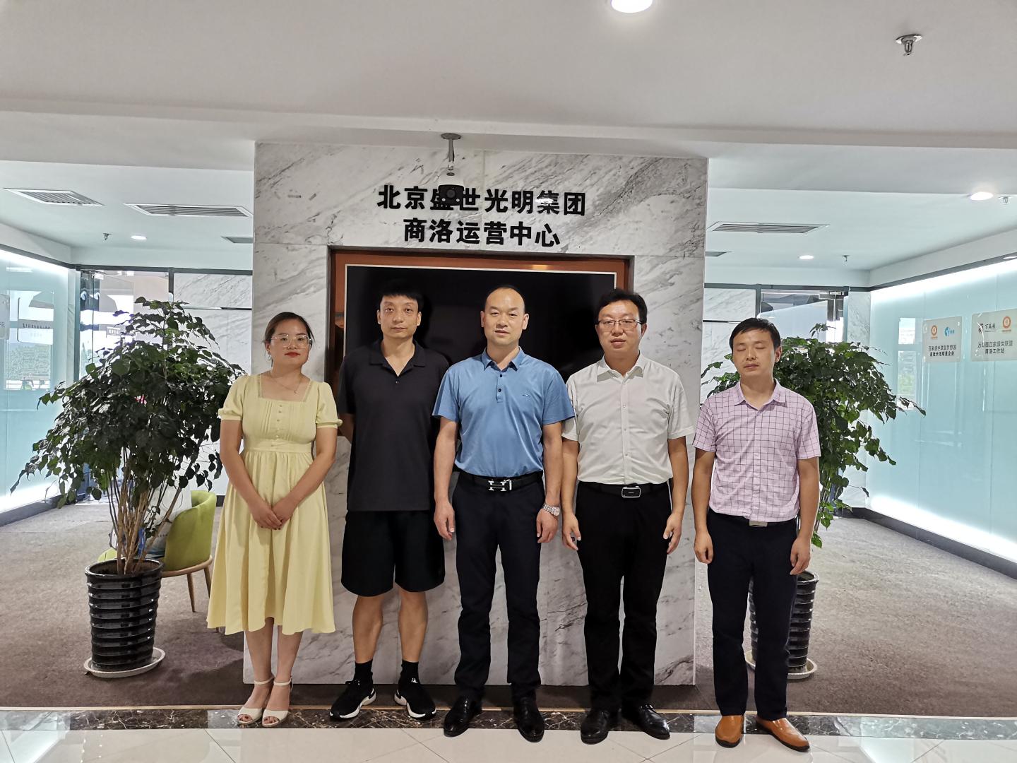 8月10日,beat365英国官网网站经理袁训锋、副经理陈垚、电科系主任何建强及青年教师刘皎一行赴陕西盛世兴商信息科技有限公司调研洽谈校企合作。盛世兴商总经理王小文、副经理王晔桐热情接待了来访教师。