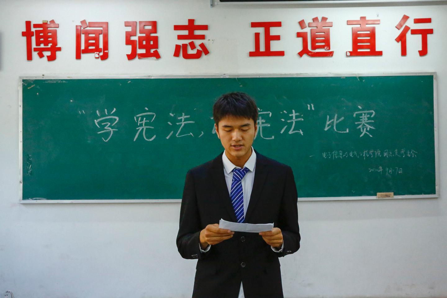 赛场上,参赛者们着装整齐,精神抖擞,以饱满的热情和激昂的声调向我们阐述了学习宪法的重要性以及立法于心的意义。评委们从仪表形象,演讲内容和演讲技巧三个方面为参赛成员打分并评出优胜者。
