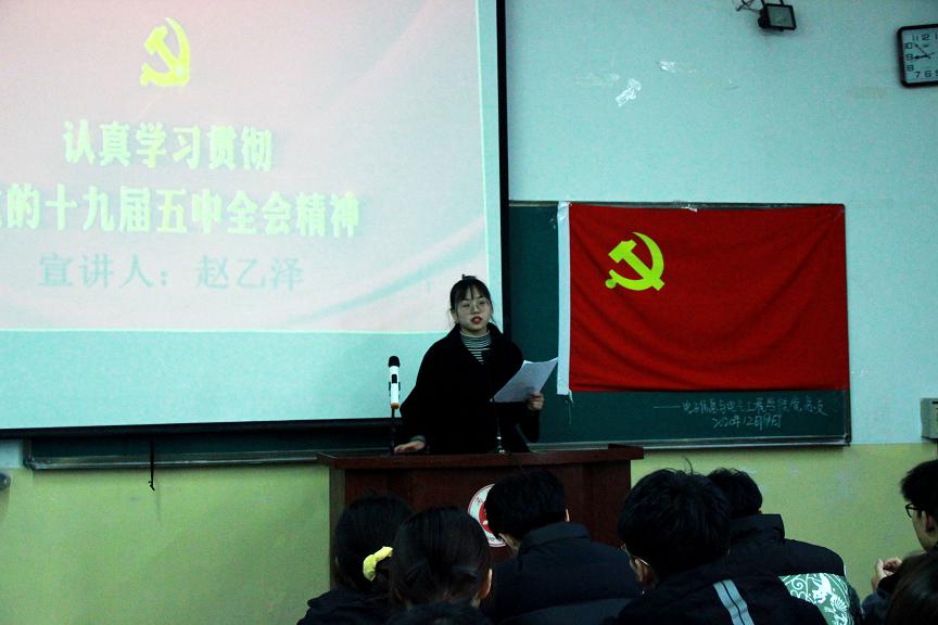 为深刻学习贯彻党的十九届五中全会精神,12月9日下午,beat365英国官网网站于2#多媒体17教室召开学习贯彻党的十九届五中全会精神员工宣讲会。beat365英国官网网站全体员工党员、非毕业班各班团支书、院团总支员工会全体成员及团优部员工干部参加本次会议,会议由赵乙泽主持并担任主讲。
