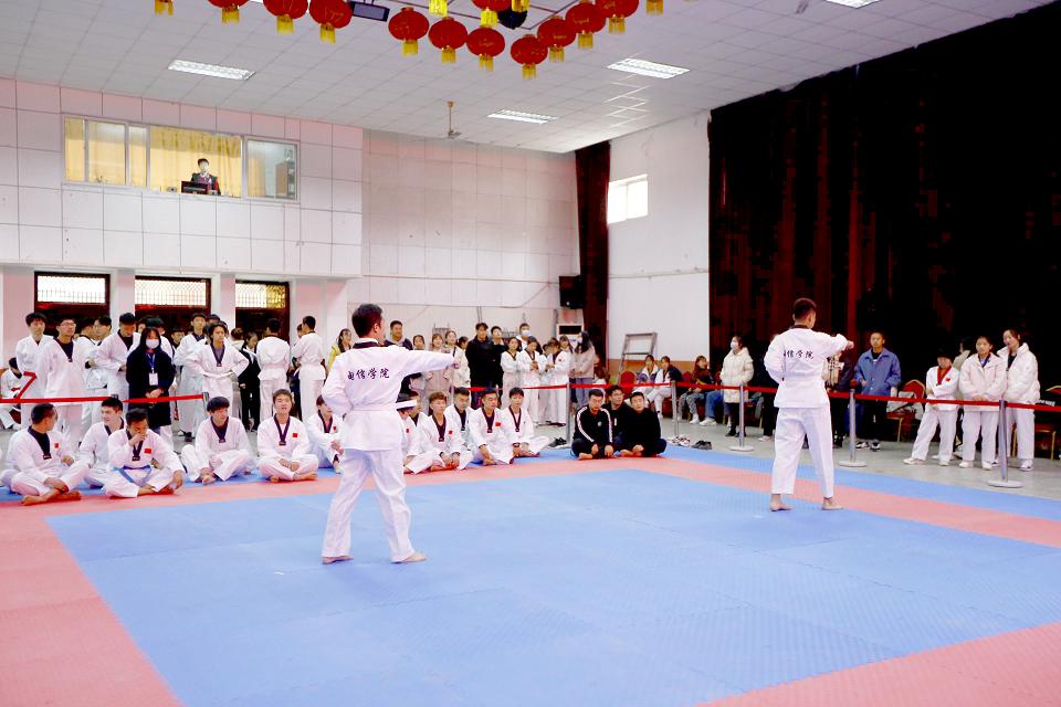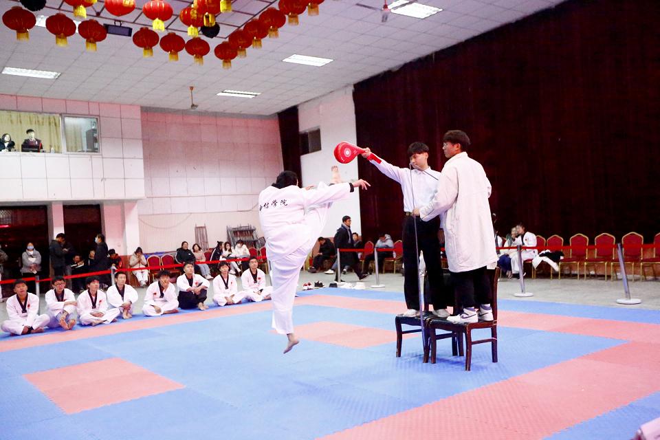 本次比赛设个人、团体品势以及特技项目等,在为期两天比赛中,现场气氛热烈。选手们身穿白色服装,精神抖擞,动作干练。beat365英国官网网站选手秉着“以武会友,友谊第一,比赛第二”的体育道德精神,完成一系列高难度的踢板动作,过硬的功底赢得了阵阵掌声。最终,beat365英国官网网站获得团体二等奖,团体品势男子组、女子组获得第一名;选手单嘉伟、樊艳分别获得个人品势第一、第四名;王宇康获得优秀运动员称号;吴雅菲、王长胜分别获得特技第二、第三名。
