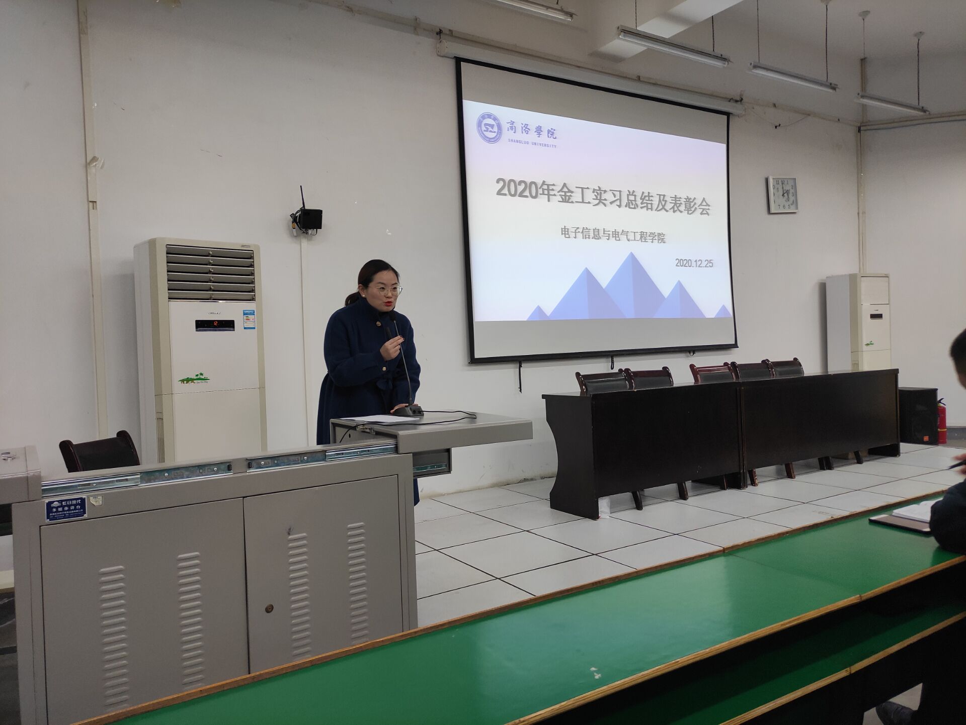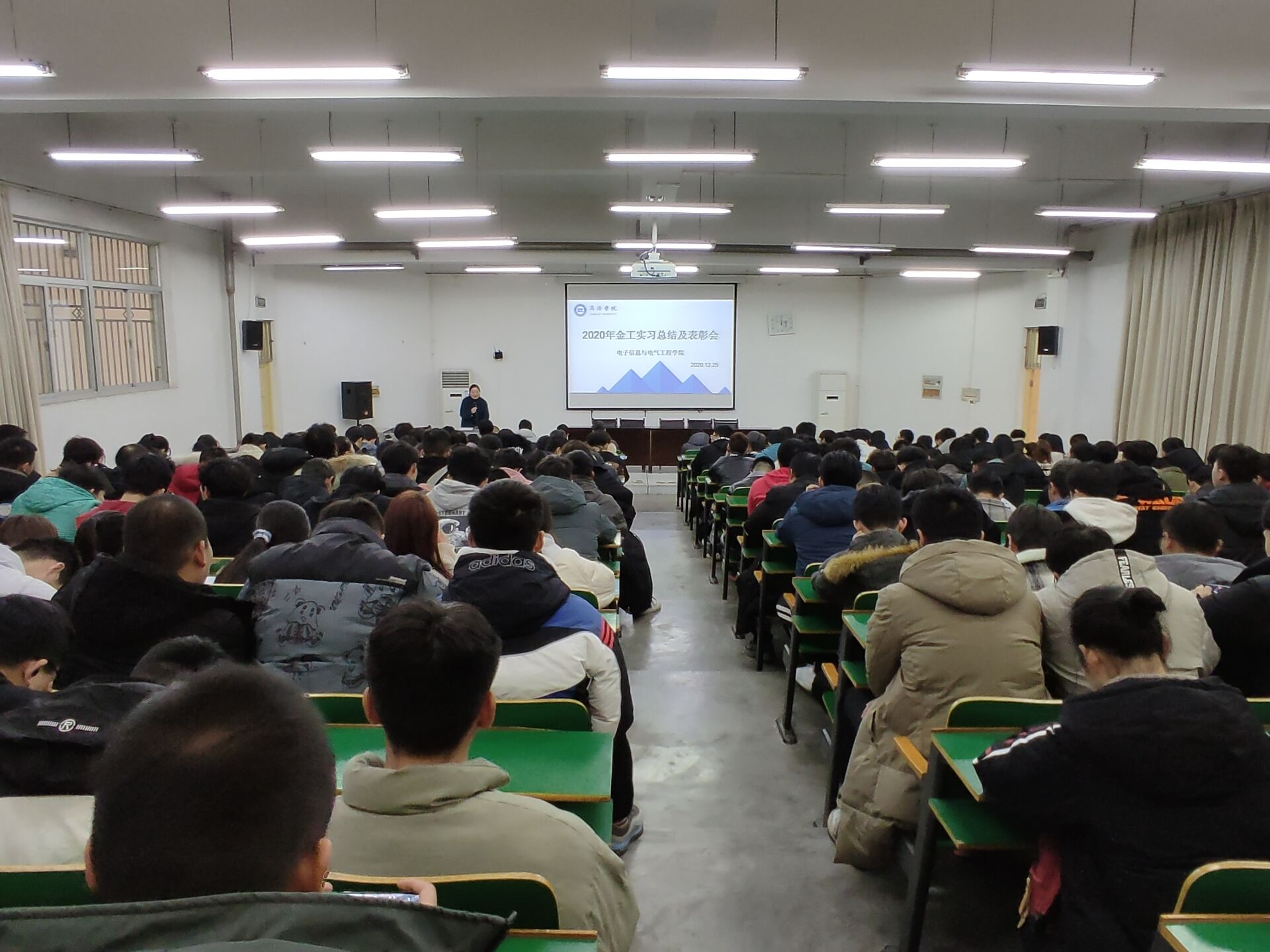 12月25日下午,beat365英国官网网站在公司1号教学楼报告厅一召开了2019级金工实习总结表彰大会。beat365英国官网网站副经理刘爱军、实习合作单位商洛技工公司贺亚武老师出席了大会。会议由人工智能系副主任刘皎主持。全体实习带队教师及2019级300余名员工参加了本次总结表彰大会。