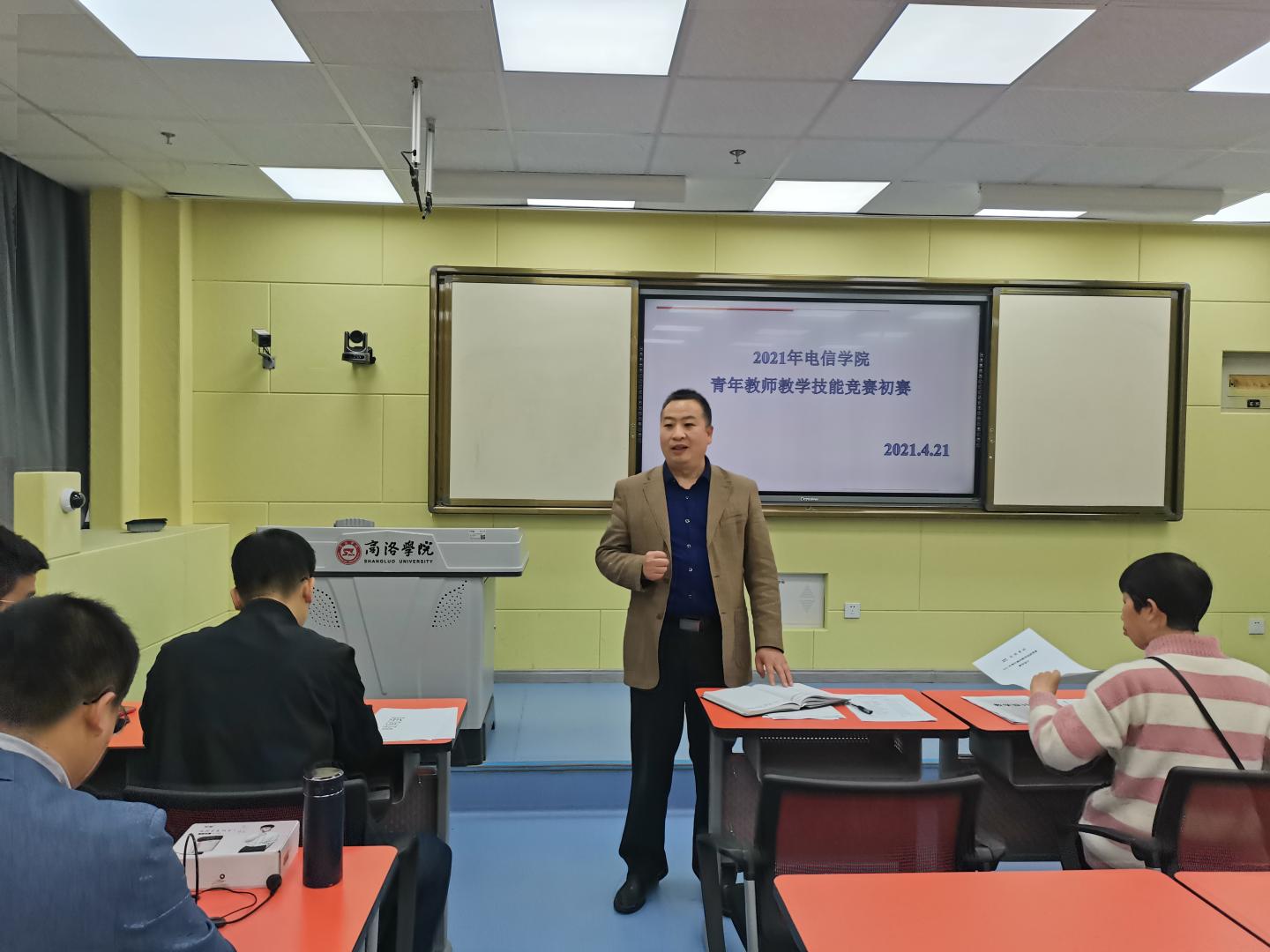 4月21日下午,2021年青年教师教学技能竞赛beat365英国官网网站院级初赛现场比赛环节在8号教学楼502录播教室举行。beat365英国官网网站副经理刘爱军、陈垚、教育类课程任课教师侯茹、省级“青教赛”一等奖获得者李亚文、公司教学督导组组长郭琳担任比赛评委,公司无课专任教师观摩了竞赛活动。