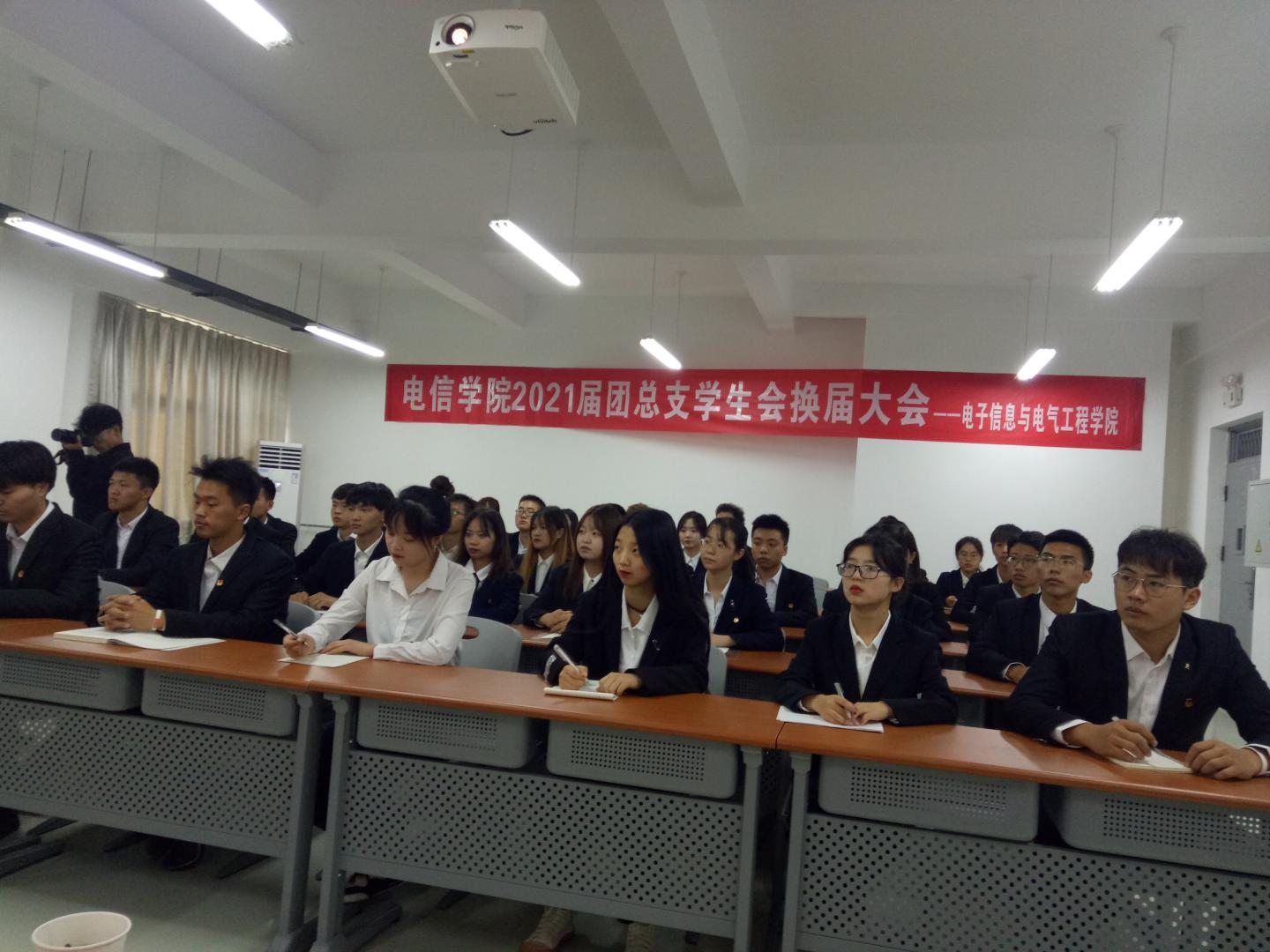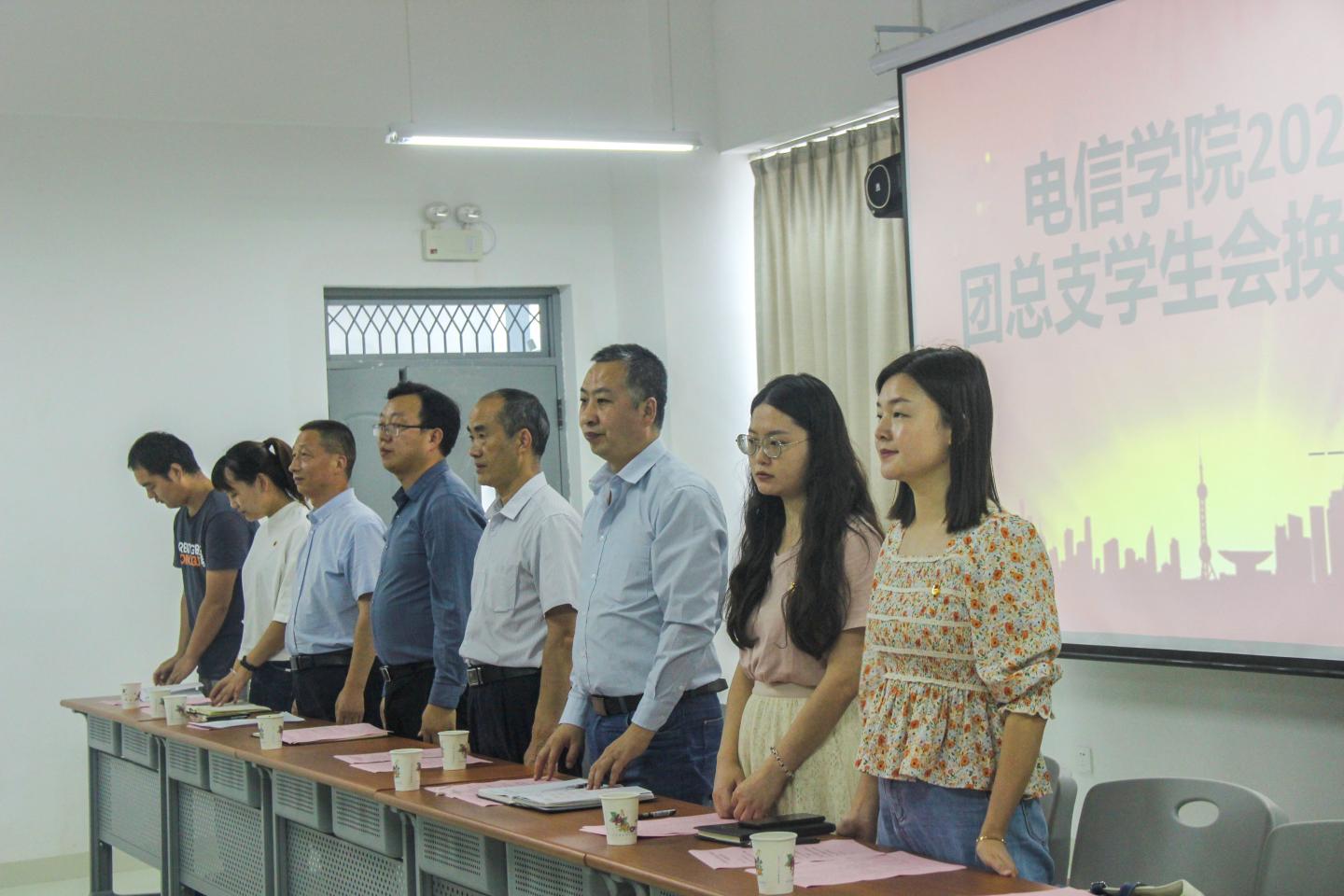 按照计划安排,9月15日下午,beat365英国官网网站团总支员工会换届大会在丹江校区3号楼201教室隆重召开。电信公司党总支书记李英、党总支副书记•经理袁训锋、党总支委员•副经理刘爱军等党政领导、员工党支部书记、辅导员及团总支员工会全体院干出席本次大会。换届大会由团总支书记唐龙龙主持。