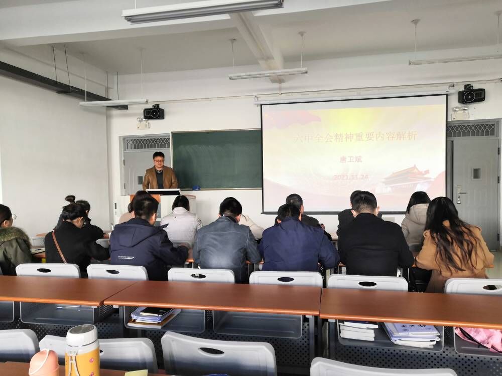 学习会上,各支部书记以专题党课方式深入学习领会习近平总书记在庆祝中国共产党成立100周年大会上的重要讲话精神和党的十九届六中全会精神。专题党课讲解结束后,刘爱军、李亚文等同志及部分党员结合教学科研实际开展了深刻的学习交流,分享了自己的学习心得。与会党员一致表示要深入贯彻落实习近平总书记“七一”重要讲话精神和十九届六中全会精神,牢记初心使命,增强“四个意识”,坚定“四个自信”,做到“两个维护”,从本职工作做起,在党建工、教学、科研和员工管理工作等方面做出更加突出的成绩。