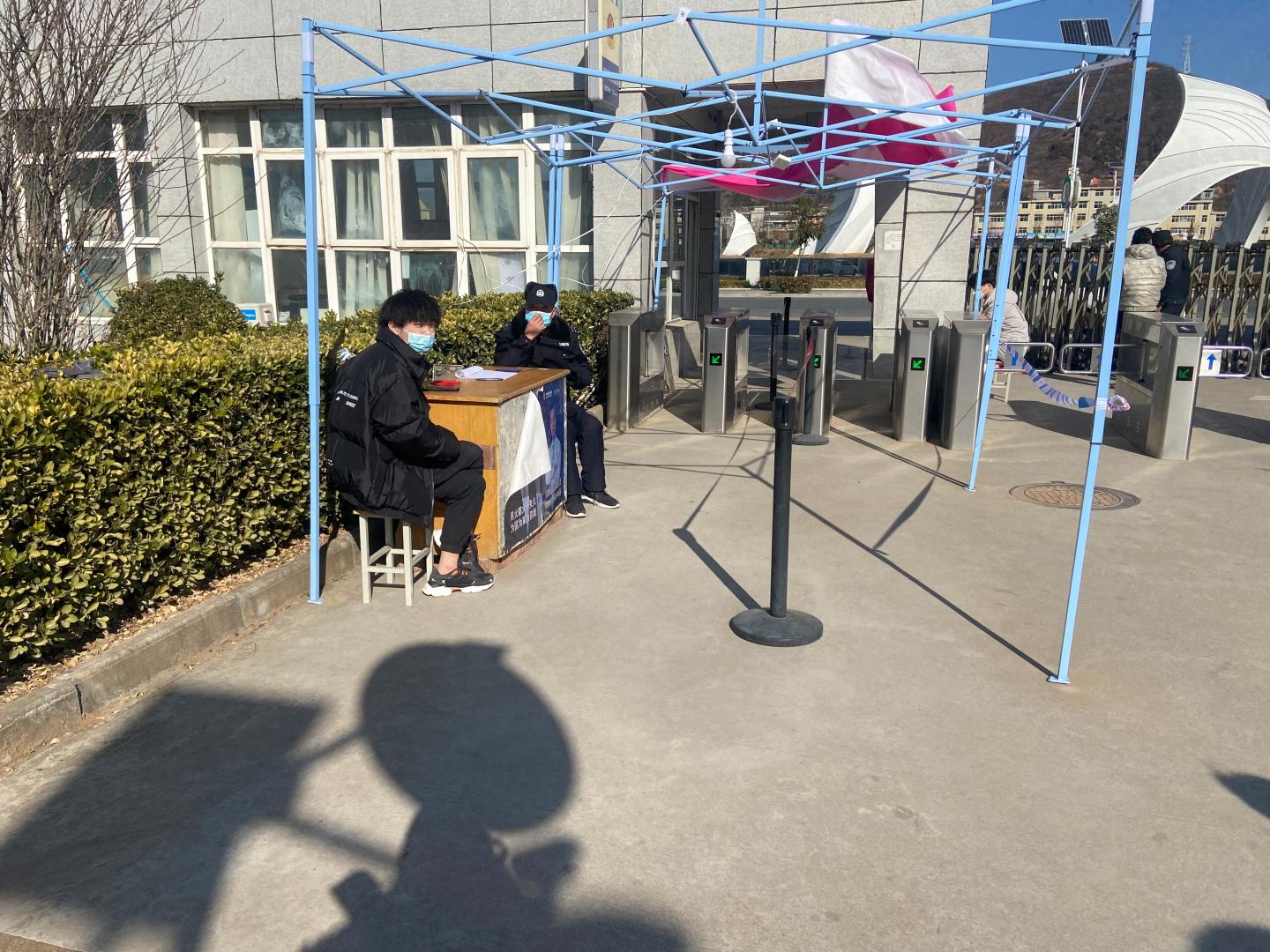 由公司员工党员组成的先锋执勤队,从正午到傍晚,协助公司保卫处对出入丹江校区东区、西区的员工进行防疫宣传、信息登记和秩序维护等工作,引导广老员工安全有序进出校园,确保疫情期间的校园安全。