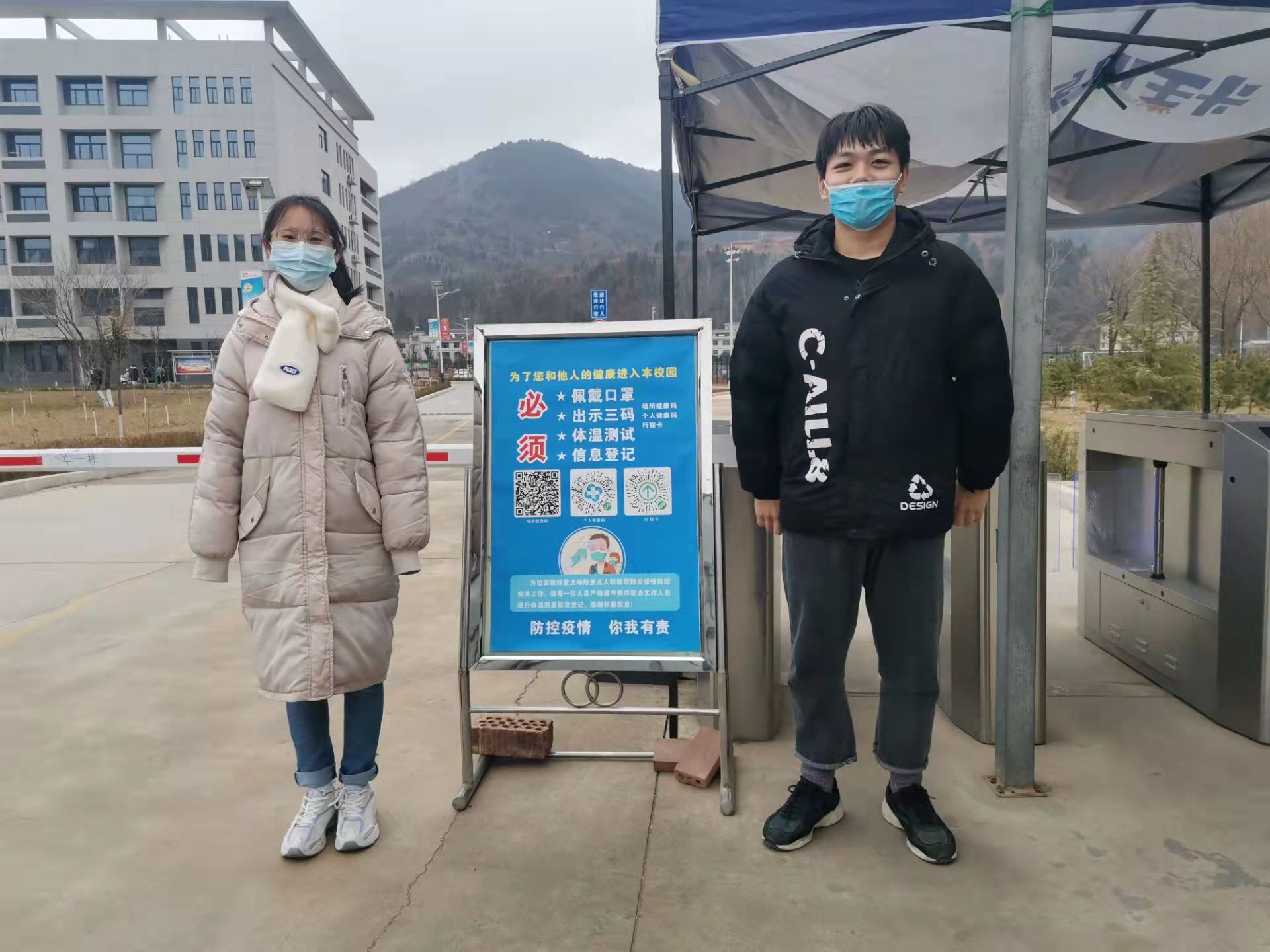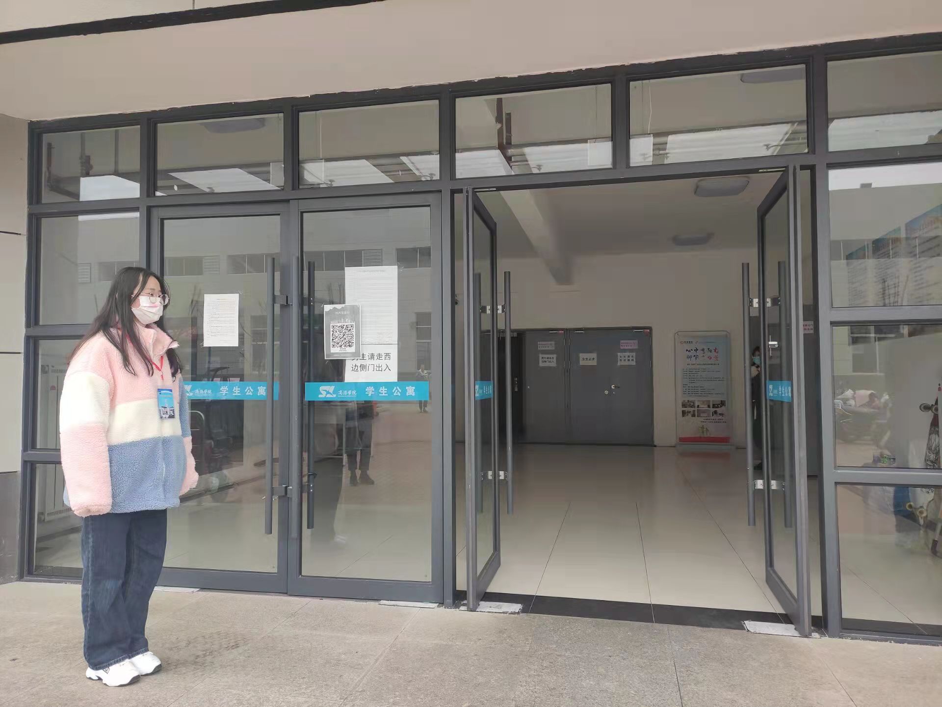 由公司员工党员组成的先锋队,从早晨到夜晚,协助公司工作人员在丹江校区三号教学楼、员工宿舍楼、东区、西区校园门口对出入人员进行监督检查、秩序维护,提醒同学们在疫情防控时期注意个人防护,佩戴好口罩,不聚集,引导全校师生安全有序进出,确保疫情期间的校园安全。用这些员工党员的话来讲,这叫“藏蓝在身、责任在肩”。特殊时期,他们本可在宿舍安心隔离,但是他们更愿意到公司最需要的地方去,发挥先锋引领作用。