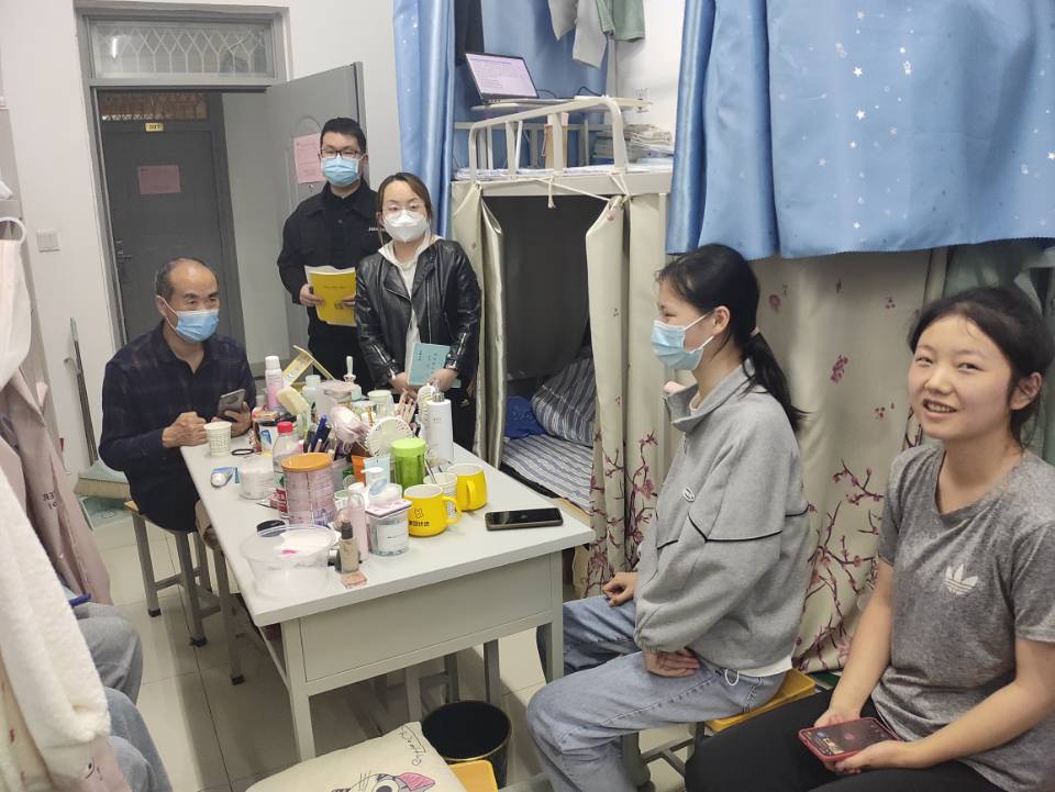 为全面深入了解员工在校基本情况,落实各项疫情防控工作,加强疫情防控期间员工教育管理服务工作,4月10日晚上,beat365英国官网网站经理袁训锋、党总支书记李英,在学工办主任陈倩及商哲、张嘉伟、李杰等老师的陪同下走访丹江校区员工宿舍;坚守在北新街校区大一辅导员淡清雅老师走访北新街校区员工宿舍,为在校员工送去关怀和温暖。