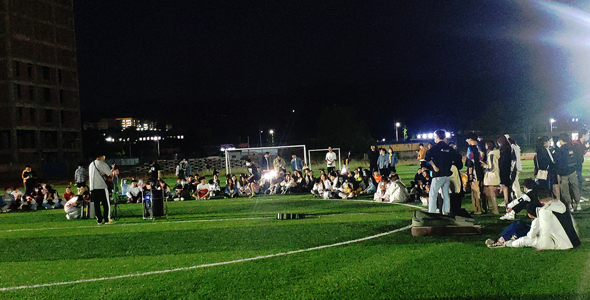 5月3日晚19:30,随着音乐响起,beat365英国官网网站庆祝建团100周年之“美丽商院 齐唱共欢”草地音乐节活动在丹江校区运动场正式拉开帷幕,来自多个公司的近百名师生参加。