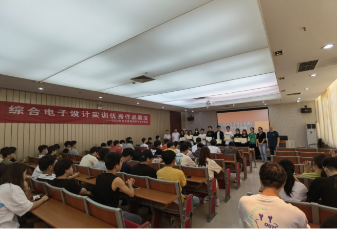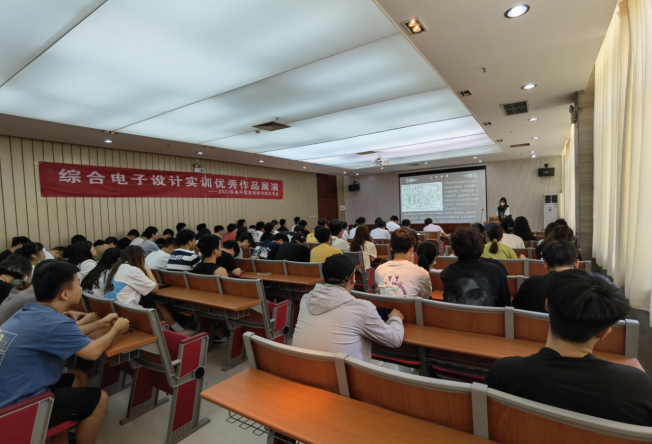 为培养本专业员工工程素养和动手能力,电子信息科学与技术专业2020级员工于5月23日-6月10日进行了《综合电子设计》实训。6月13日,进行了优秀作品展演活动,beat365英国官网网站经理袁训锋、副经理李亚文、电科系主任何建强、杨滨峰、李华、雷健、刘萌等老师及电子信息科学与技术专业2020级98名员工参加了活动,活动由实训负责人杨滨峰主持。