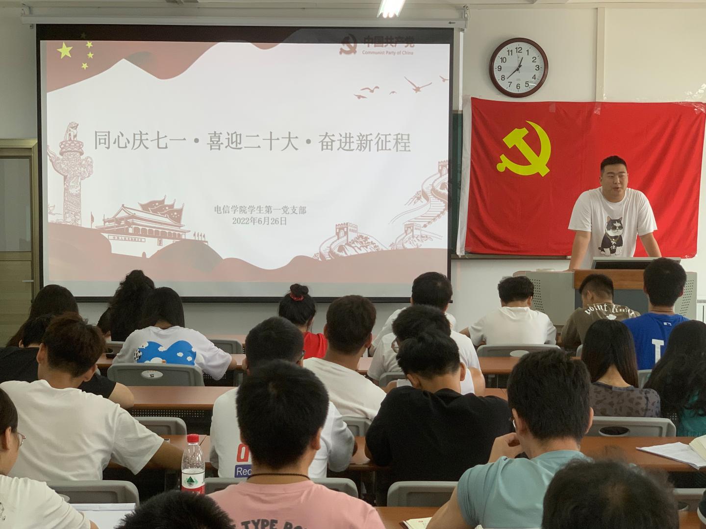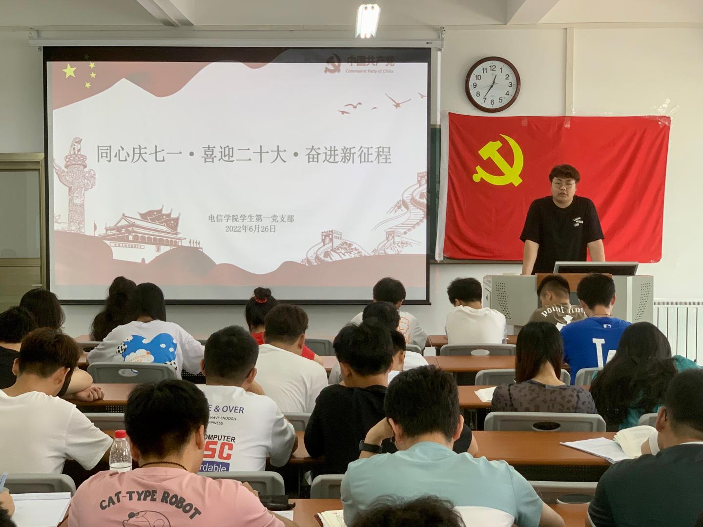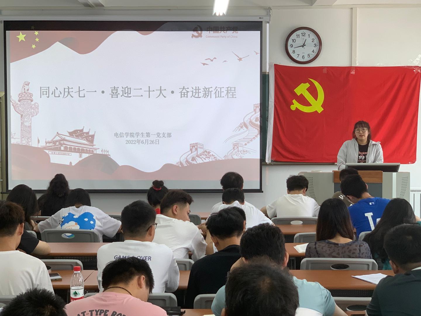 为庆祝中国共产党成立101周年,推动党史学习教育常态化长效化,深入学习贯彻省第十四次党代会精神,迎接党的二十大胜利召开,6月26日下午,公司员工第一党支部于丹江校区3-204教室举办了“同心庆七一·喜迎二十大·奋进新征程”主题党日活动。活动由支部书记孙凯主持,支部全体党员参加。