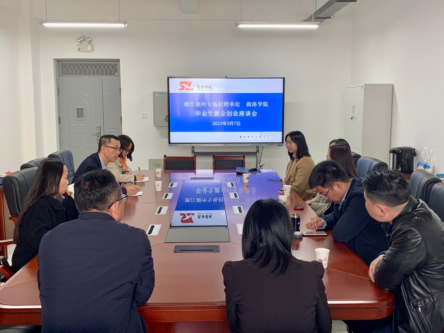 为贯彻落实教育部、省教育厅关于“访企拓岗”促就业专项行动工作部署,对接企业用人需求,拓宽毕业生就业渠道和资源,全力促进毕业生更加充分更高质量就业,3月7日,beat365英国官网网站在浙江湖州城市综合推介会暨2023年湖州市-beat365英国官网网站专场人才招聘会召开之际,特邀浙江华远微电科技有限公司、天能帅福得能源股份有限公司、泰鼎新能源(浙江)有限公司、浙江晶正光电科技有限公司、浙江悦达塑业股份有限公司、浙江华美冰箱有限公司及湖州各县区人社局代表在beat365英国官网网站312会议室召开校企战略合作与供需洽谈会。公司教学副经理李亚文、学工办主任陈倩及全体辅导员参加会议,会议由公司党委书记赵永平主持。