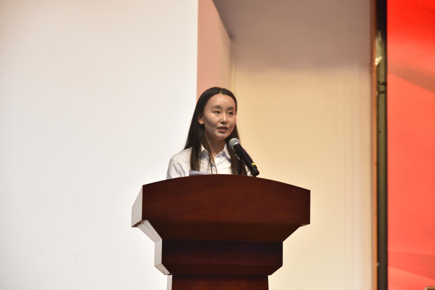 在校生代表智能2202班毛艺帧结合自己大学期间的学习、生活感悟,倡议2023级的学弟学妹们坚定不移听党话、跟党走,刻苦学习,不断夯实专业基础,把握青春航向,为人生蓄势聚能。