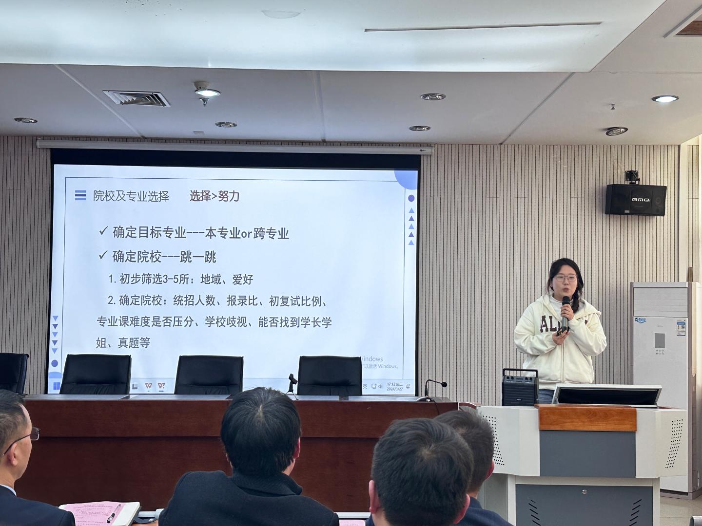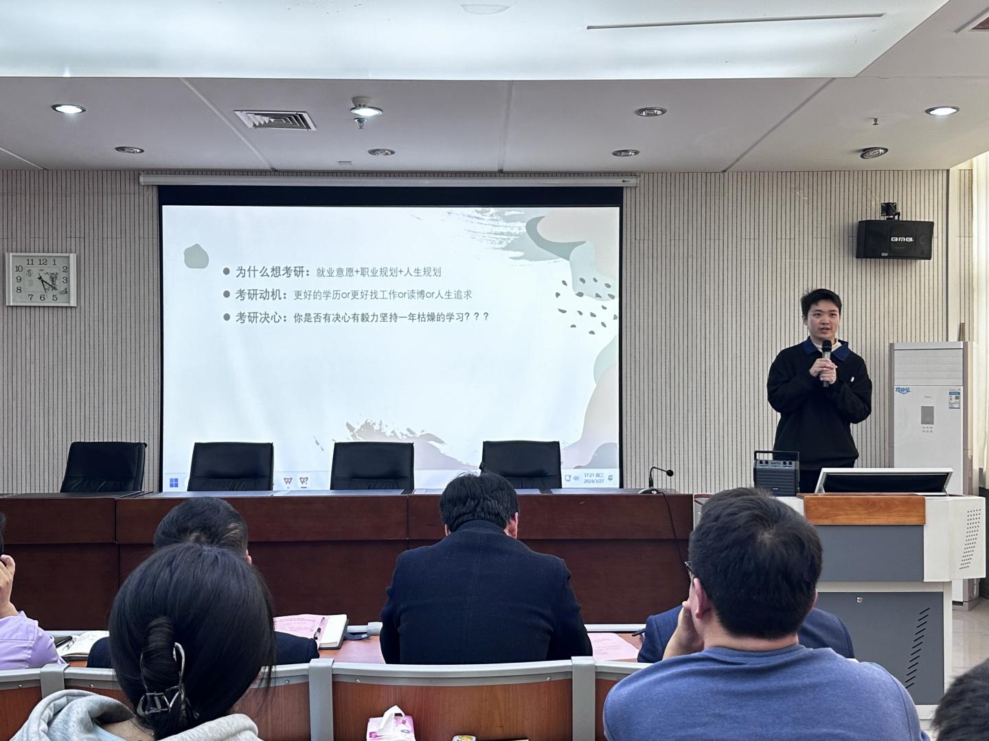 2019级考研录取员工胡桂驰、2020级考研上线员工徐晓宁、余海铭等结合自身的考研经历、从“为什么考研”“什么时候开始复习考研”“如何选择院校专业”“如何查找复习资料”“如何持之以恒、调整心理状态”等多角度、全方面分享自己的成功方法,赢得全场师生的阵阵掌声。