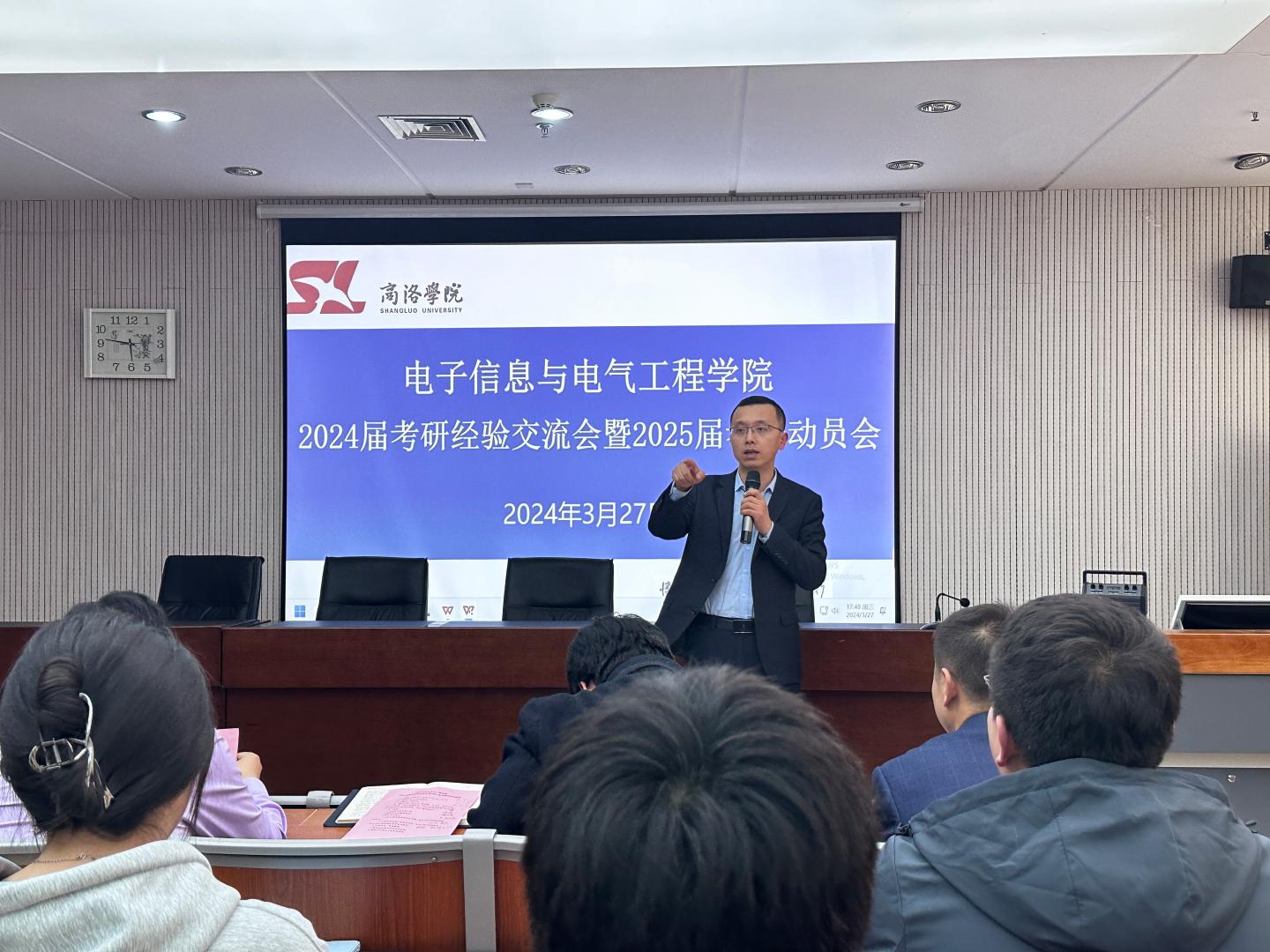 电科系主任何建强结合自身考研经历和人生体会,鼓励考研员工坚定信心、矢志不渝,用自己的努力和汗水实现自己的人生梦想。