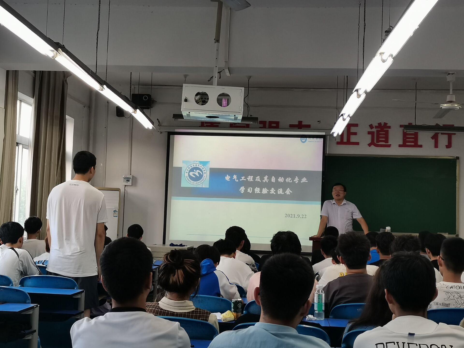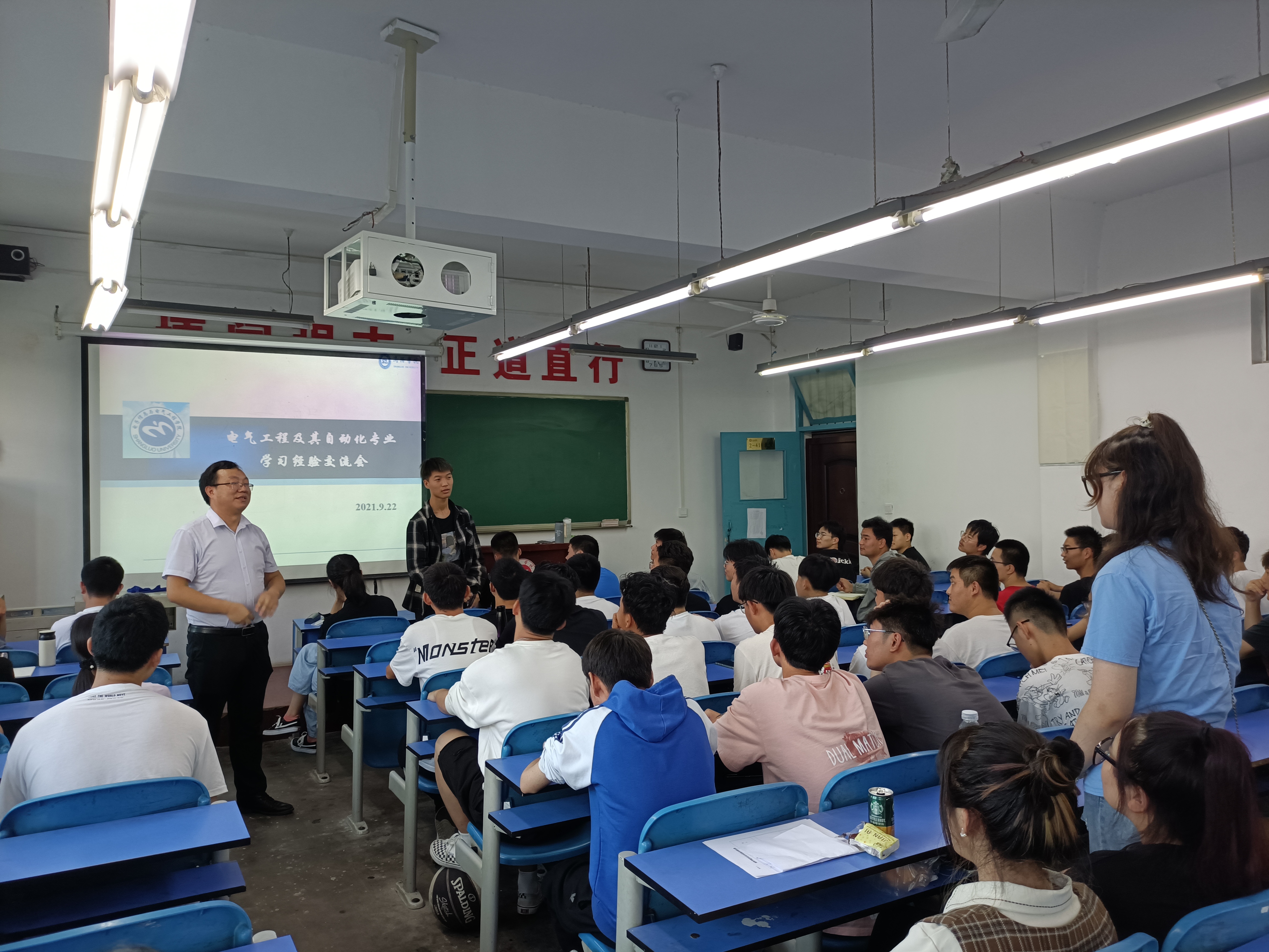 为帮助2021级新生尽快适应老员工活,为其分享好的学习经验与方法,beat365英国官网网站电气工程及其自动化专业于9月22日分别在2-402和2-410教室召开学习经验交流会。beat365英国官网网站经理袁训锋出席会议。会议由电气工程系主任张商州主持。电气系刘俊、柯希彪、杨彪、雷健等教师,19级员工代表张思潘、耿玥嘉、王森,20级员工代表石思雨、刘源及电气系2021级全体新生参加了会议。