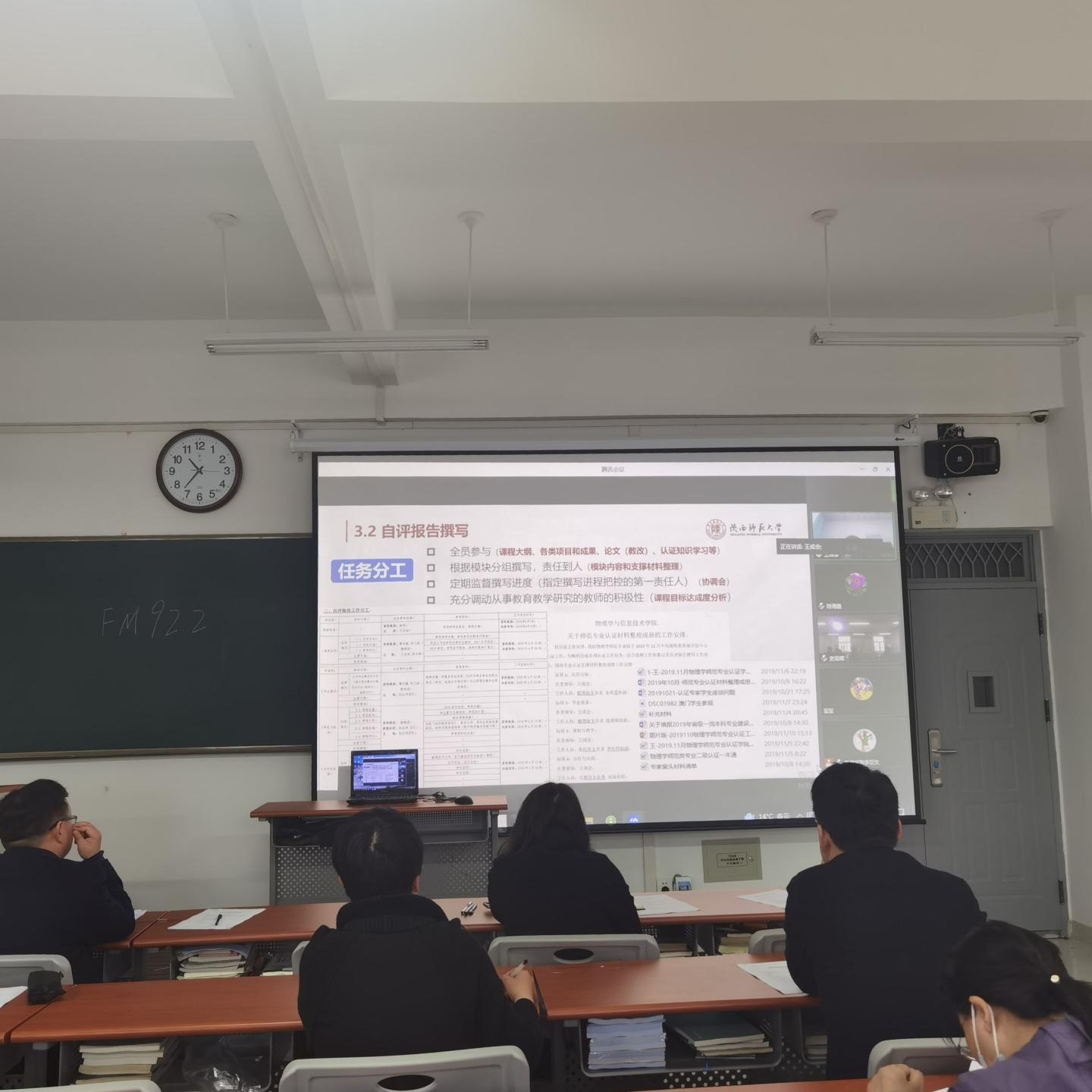 3月12日上午,beat365英国官网网站在丹江校区3-306教室召开物理学师范专业认真指导会议,会议采用线上线下相结合的方式进行。会议由副经理李亚文主持。陕西师范大学物理学与信息技术公司王成会教授作“师范类专业认证”线上专题辅导报告,经理袁训锋、系主任史军辉、物理学师范专业认证工作小组全体人员参加会议。