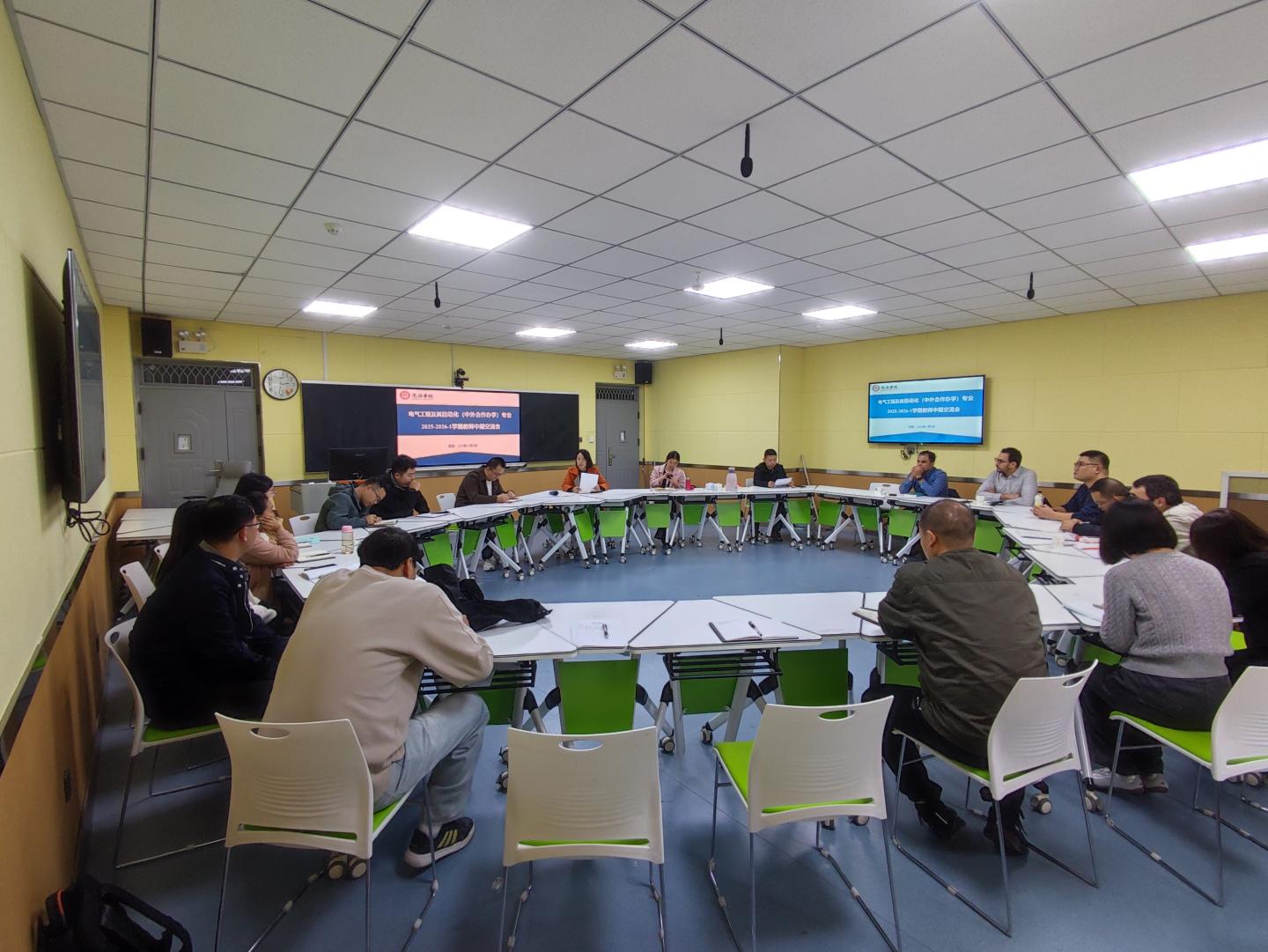 为了切实实保障公司产品工作平稳运行,持续提升电气工程及其自动化(中外合作办学)专业的教学质量与管理水平,beat365英国官网网站在期中教学检查中设置了中外合作办学专项检查。通过前期检查、中外合作共课教师研讨、师生座谈、教师听评课等梳理的问题,beat365英国官网网站于11月5日下午在丹3-308教室举办了中外合作办学专业教师交流会。beat365英国官网网站副经理李亚文、副书记刘征文、电气工程系全体教师、外籍教师Youcef、Shawn、Anter和全体学工人员共同参与了本次交流会,会议由系主任张商州主持。