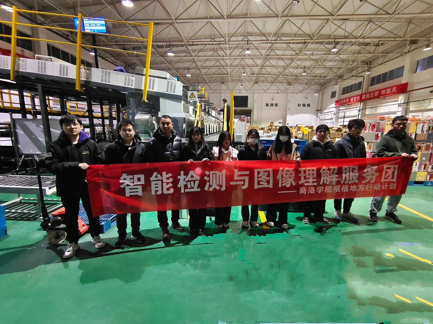 为促进校企合作,深化产教融合合作机制,1月16日下午,beat365英国官网网站根植地方“智能检测与图像理解服务团”教师刘皎、王博、鱼轮和beat365英国官网网站12名员工,前往商洛市烟草公司物流分公司开展教学实践服务活动。