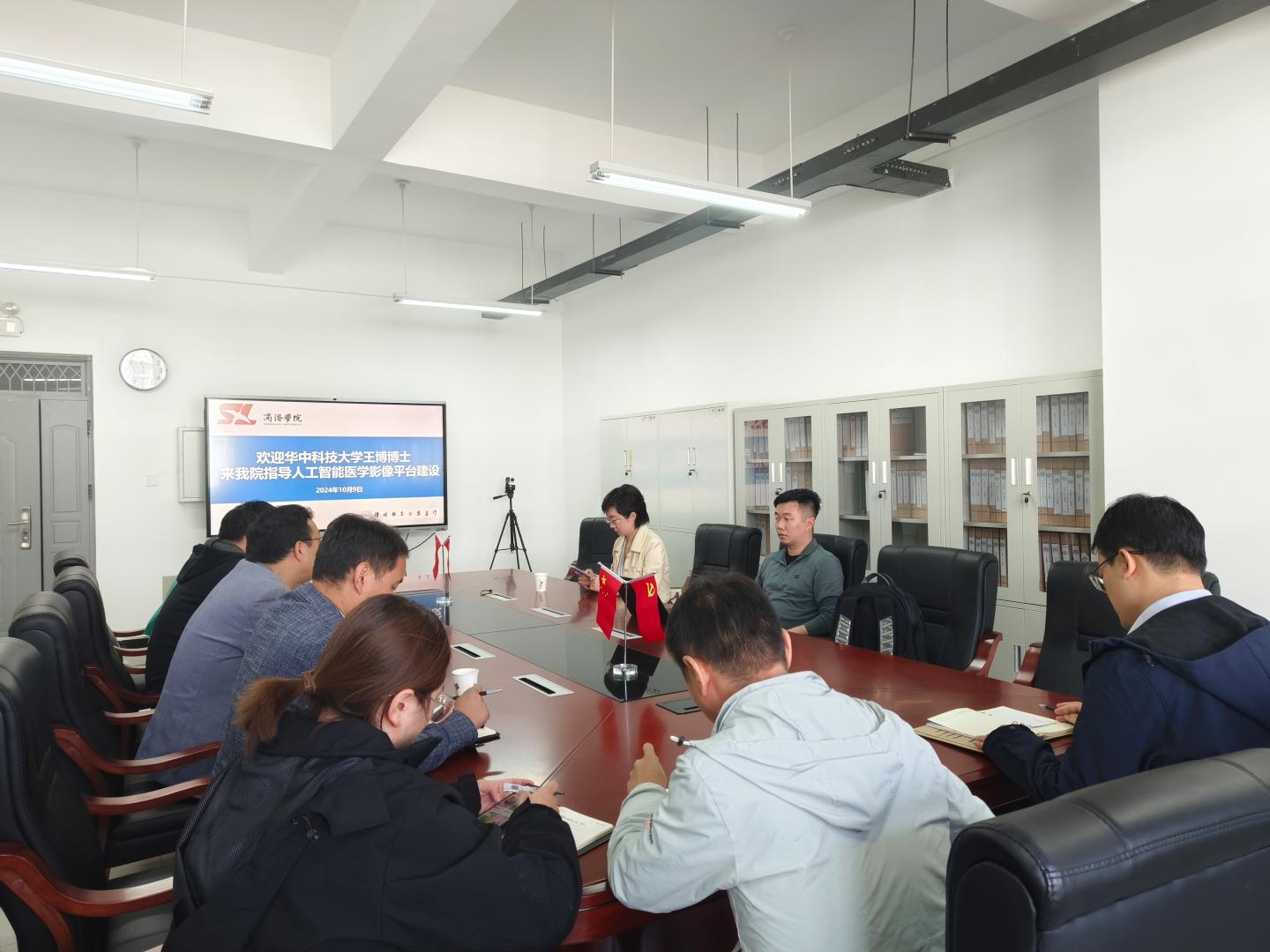10月9日上午,华中科技大学王博博士来beat365英国官网网站指导人工智能医学影像平台建设,科技处处长程敏,电信公司党委书记袁训锋、经理陈垚、教学副经理李亚文、副书记刘征文及平台骨干教师10余人参加了座谈会。