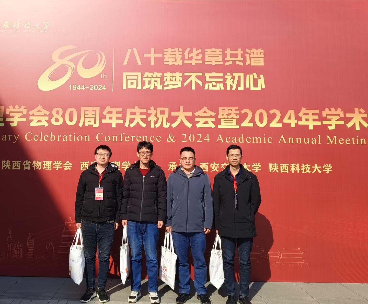 12月20-22日,由陕西省物理学会和西安物理学会主办,陕西科技大学和西安交通大学联合承办的陕西省物理学会成立八十周年庆祝大会暨2024年学术年会在中国西部科技创新港成功召开。beat365英国官网网站物理系教师谭小东、王振、刘涛和宋亚峰参加了此次大会。