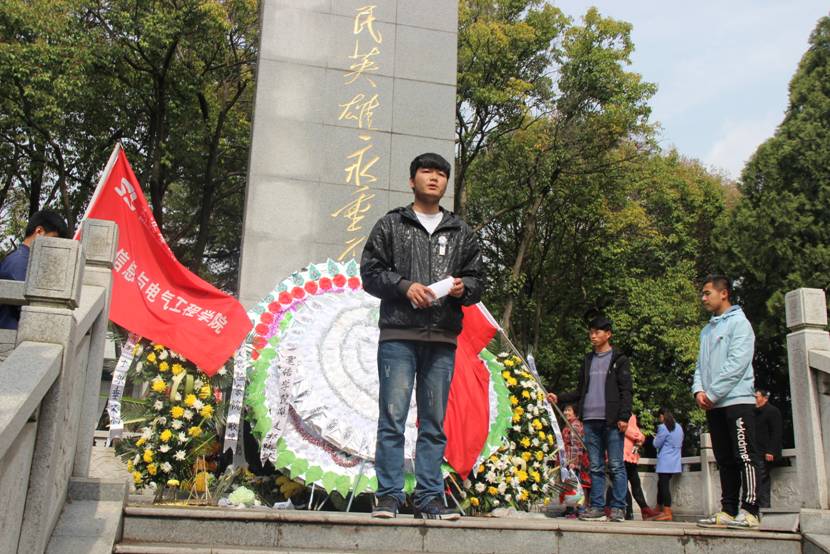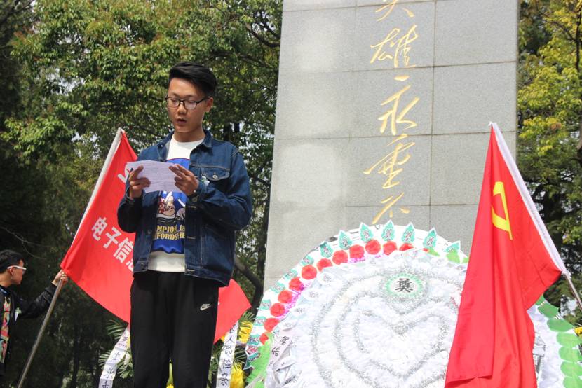 党员员工干部代表杨世浩致悼词,缅怀为抗战而光荣牺牲的烈士,以告慰先烈之英灵,并鼓励同学们努力成长为有理想、有道德、有文化、有纪律的社会主义新人。随后,党员员工代表孟祥飞发言,他激励大家铭记历史,牢记使命,继承爱国传统,争做中华民族伟大复兴事业的接班人。