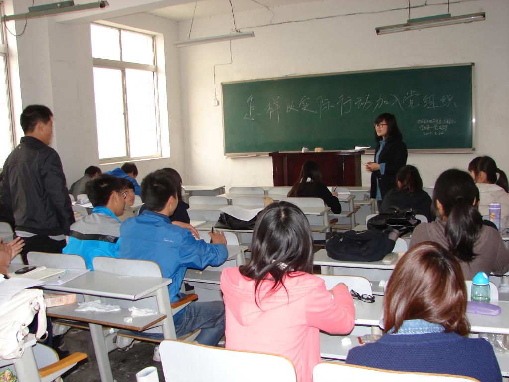 在分组讨论学习中,同学们就“怎样以自己的实际行动加入党组织”做了热烈的讨论,各组入党积极分子畅谈了自己对党的认识和对入党问题的思考,并纷纷表态将从点滴小事做起,在思想上积极进取、在工作中乐于奉献、在学习上精益求精,以实际行动向党组织靠拢。在所有培训课程结束后,27号晚7:30,我系对所有党课培训对象进行了结业考试。