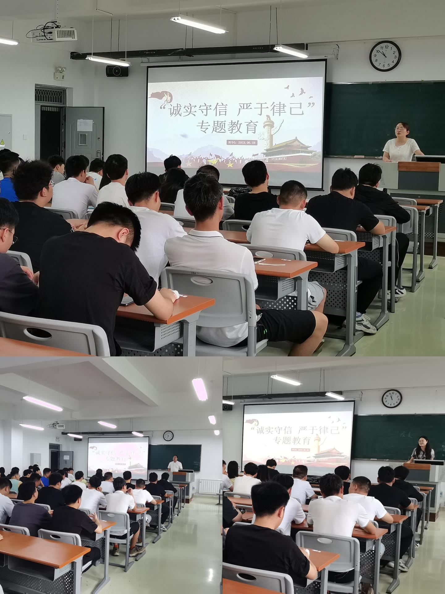 “诚实守信 严于律己”专题教育活动。6月28日下午,毕业班辅导员陈倩、唐龙龙、吴茜在丹江校区3-202室召集全体毕业生召开“诚实守信 严于律己”专题教育会。毕业生纷纷表示,将牢记beat365英国官网网站“博闻强志 正道直行”的校训,恪守“自强不息 止于至善”的大学精神,老实做人、诚信做事,努力为母校争光。