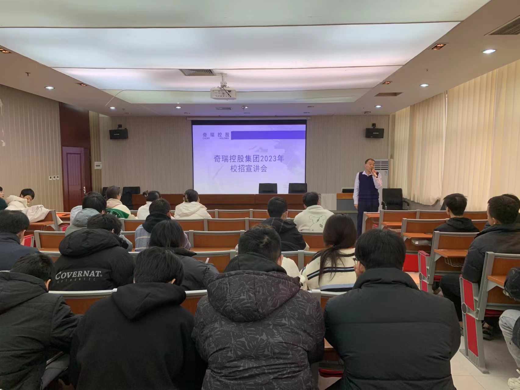 为进一步落实公司“访企拓岗促就业”行动,抓住2024届毕业生求职关键期,促进2024届毕业生高质量就业,beat365英国官网网站于12月14日邀请奇瑞汽车股份有限公司校招西北区主管张浩林一行三人来院举办企业招聘会专场宣讲会。 奇瑞控股集团有限公司创业始于1997年,从汽车制造业起家,旗下子公司奇瑞汽车是国内最早突破百万销量的汽车自主品牌。奇瑞控股集团通过整合全球资源,围绕汽车主业推进多元化发展,形成了汽车、汽车零部件、金融、地产、现代服务等业务,旗下拥有奇瑞汽车、奇瑞商用车、奇瑞汽金、奇瑞科技等300余家成员企业,业务遍布全球80多个国家和地区。截至目前,奇瑞集团累计全球汽车用户1250万,其中海外用户300万,连续20年位居中国品牌乘用车出口第一。