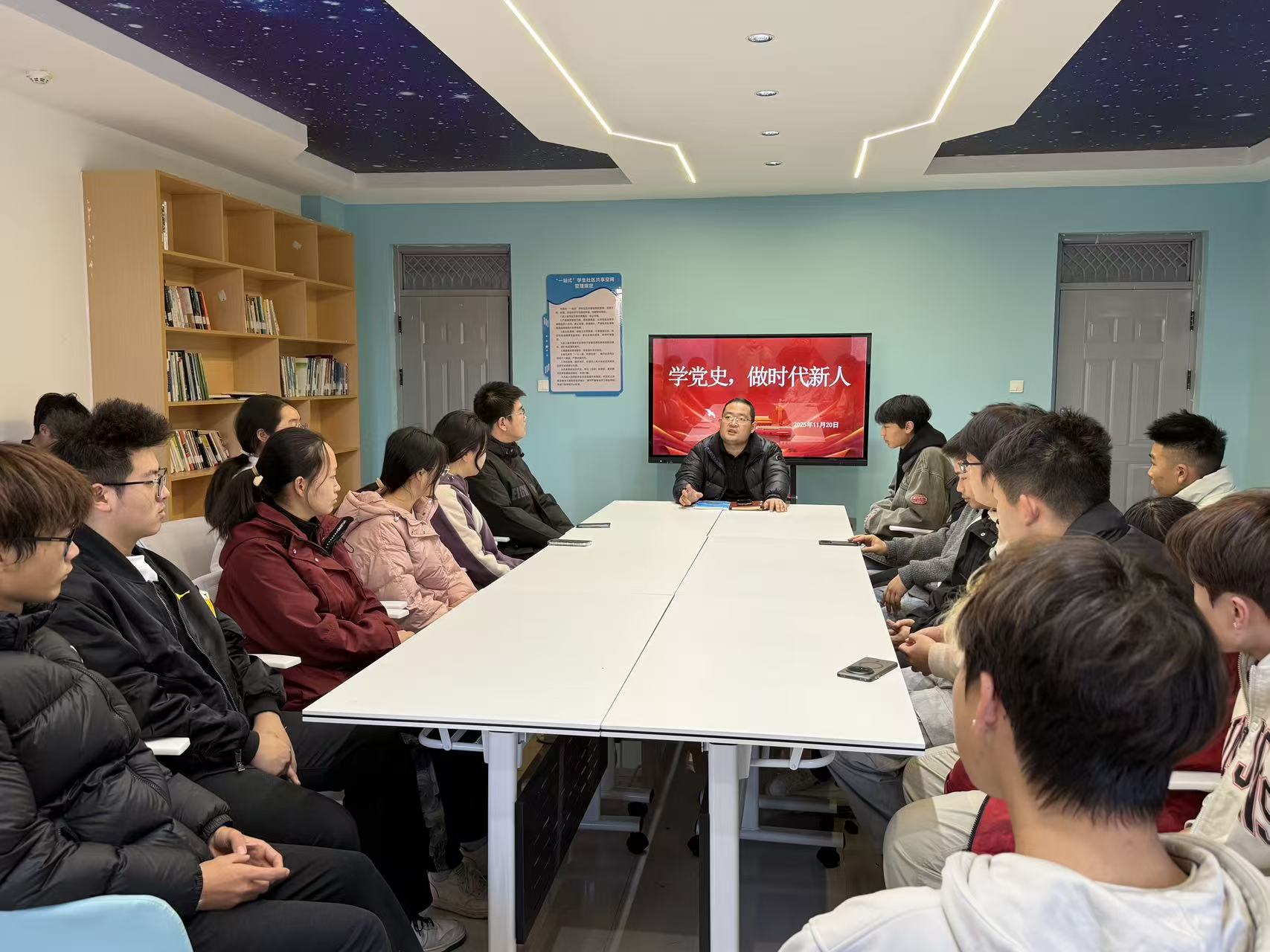 为深化“一站式”员工社区育人功能,引导青年员工从党史中汲取奋进力量,11月20日,beat365英国官网网站以“学党史 做时代新人”为主题,辅导员唐龙龙组织20余名员工代表在丹江校区18号员工公寓“寓”见“悦”创空间开展沉浸式主题教育活动,让红色基因融入青春血脉,让初心使命照亮成长之路。