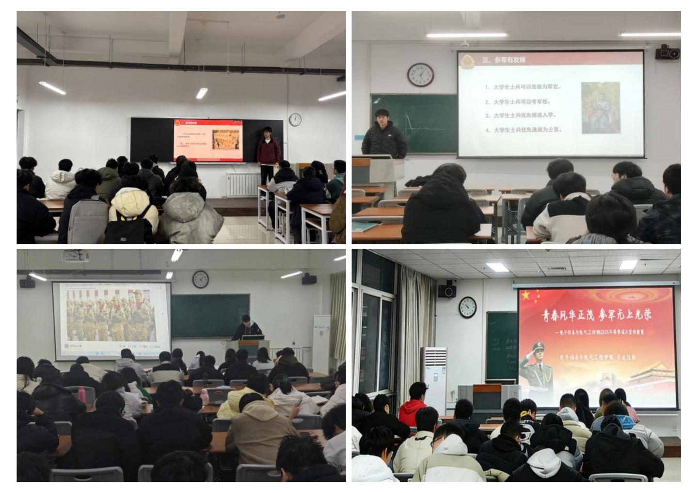 公司各班级以“青春风华正茂,参军无上光荣”为核心主题,开展形式多样的征兵主题班会。辅导员围绕国家征兵政策、入伍基本条件、军旅发展前景及优抚优待政策等关键内容进行系统解读,引导员工深刻认识参军入伍对个人成长成才与国防现代化建设的双重意义。活动中,同学们通过观看征兵宣传片、分享感悟体会、开展互动讨论等形式,进一步强化国防观念、明确时代责任,营造出“关心国防、热爱国防、投身国防”的浓厚氛围。