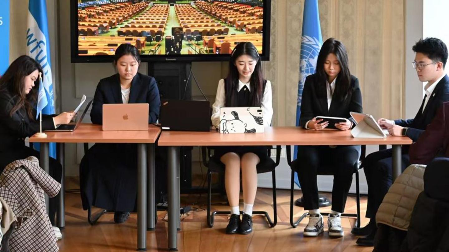 “选择比努力更重要,但正确的选择需要更清醒的认知。”当被记者问及成长关键词时,洪梓航这样回答。这位工科生选择站上联合国舞台,源自对自身发展的清晰规划。洪梓航的选拔经历颇具挑战——既要突破专业壁垒,在纯英文面试中展现对国际事务的深度认知,又要超越舒适区,将工科思维与全球治理需求精准对接。他坦言:“认清差距后的定向突破是关键。”正是这种清醒认知,让他在与来自国际关系、新闻传播等专业选手的竞争中,凭借对“‘一带一路’新能源建设”的独到见解脱颖而出。